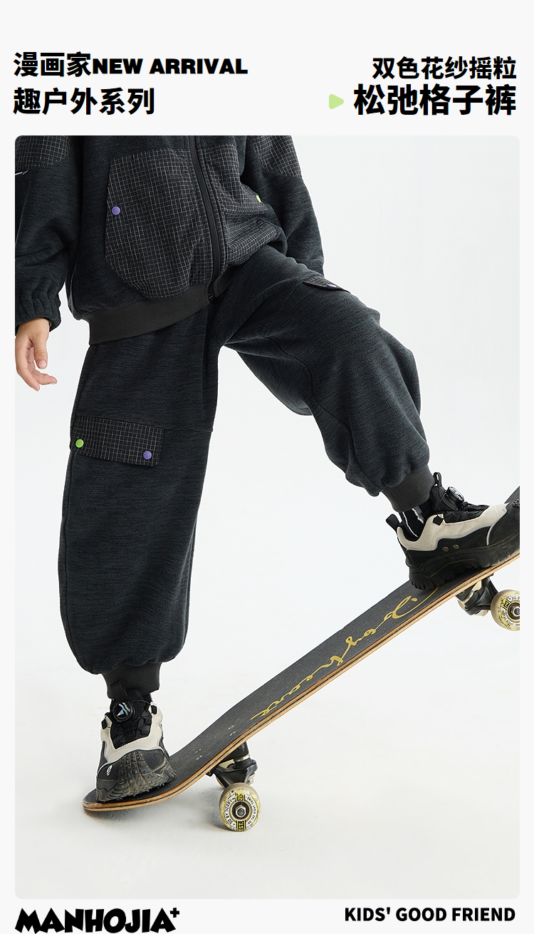 漫画家【松弛格子裤】儿童裤子25秋冬男女童松弛感抗静电保暖长裤