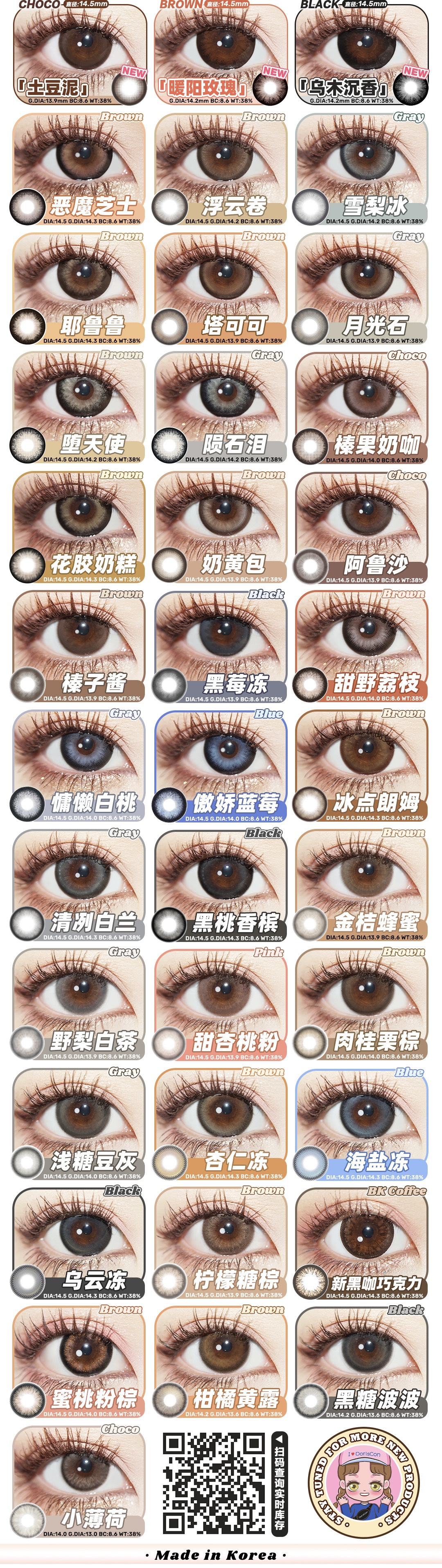 [韩国美瞳] Doriscon 韩产年抛 人气百搭款纯欲甜心黑巧色 一副(2片)