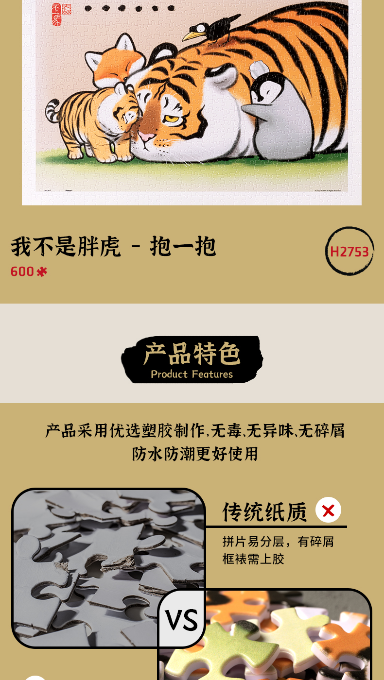 【折扣商品 不退不换】600片 平面拼图 塑料拼图 H2753 我不是胖虎-抱一抱