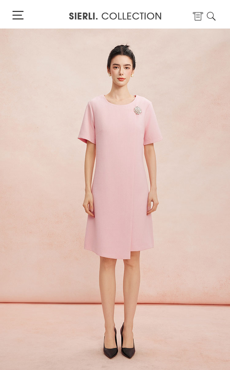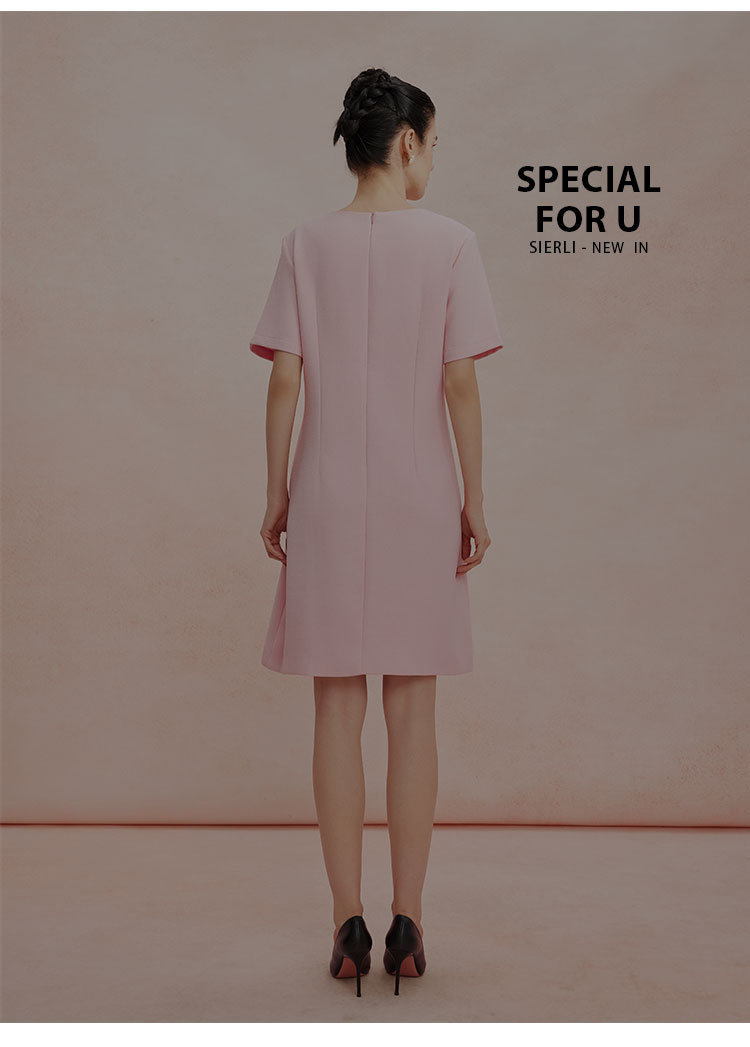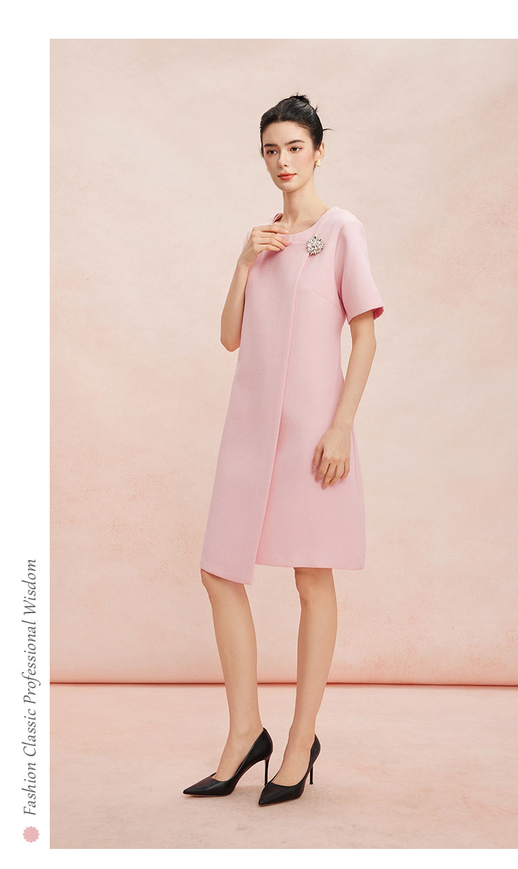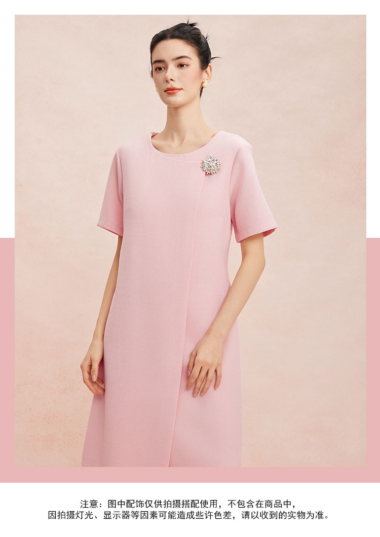 RE8A4斯尔丽24年新款简约气质不对称搭片设计装饰扣连衣裙