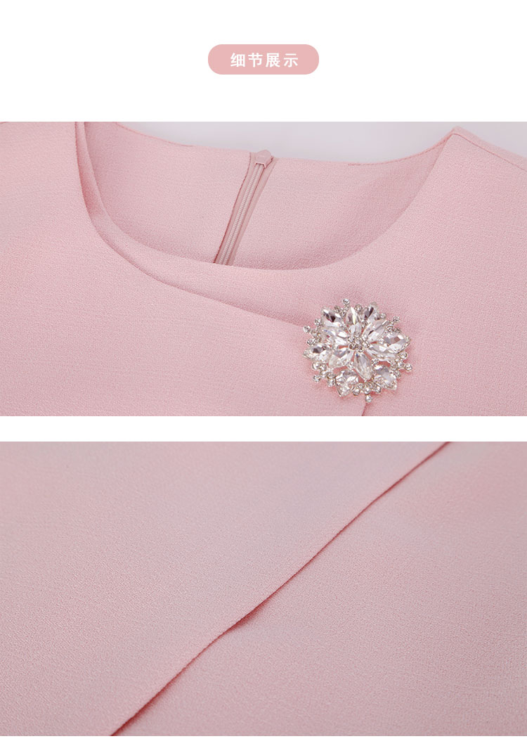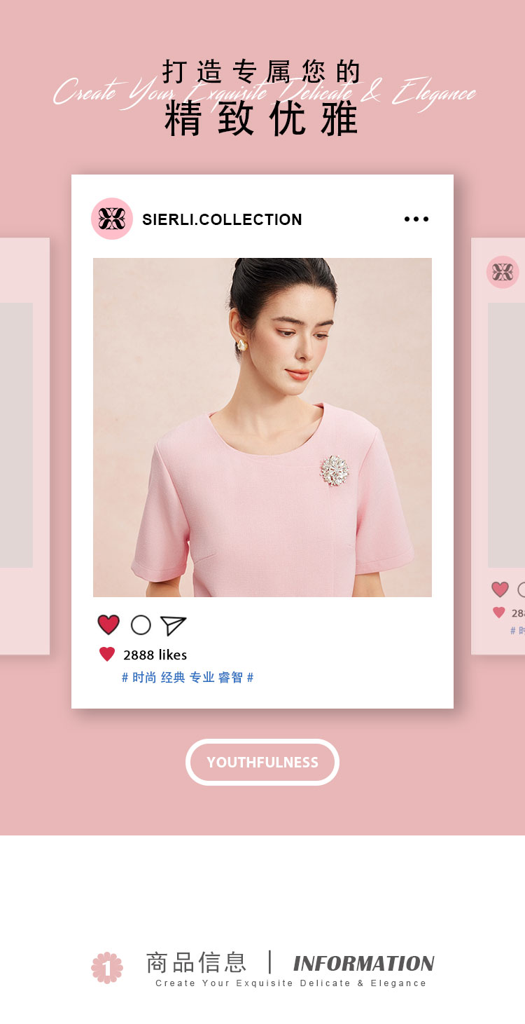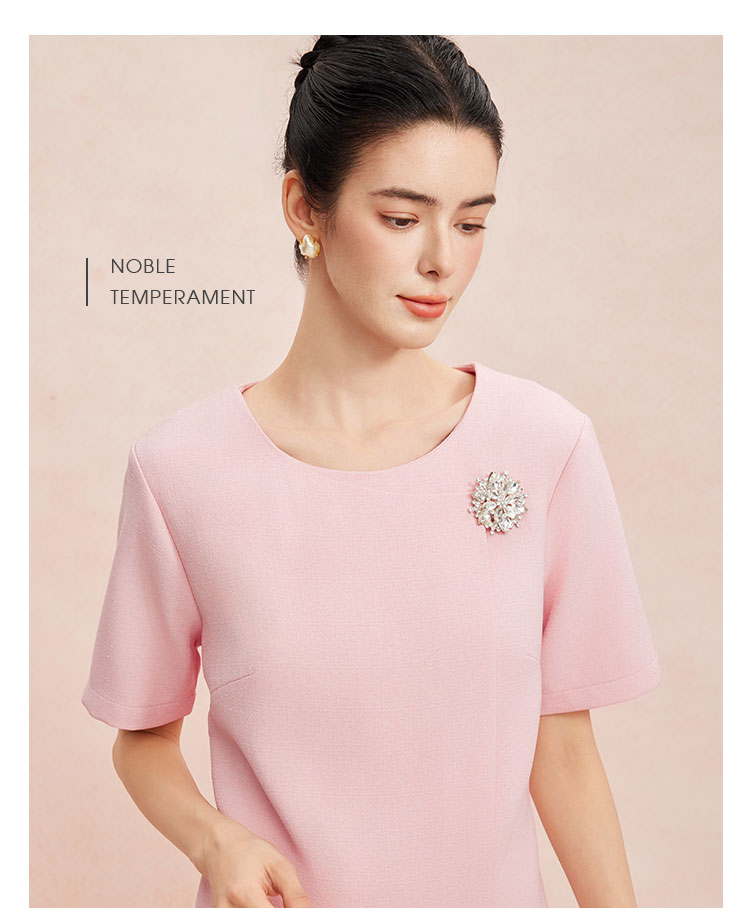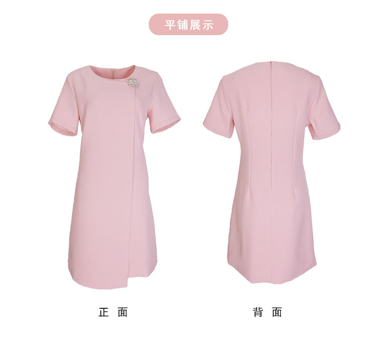 RE8A4斯尔丽24年新款简约气质不对称搭片设计装饰扣连衣裙