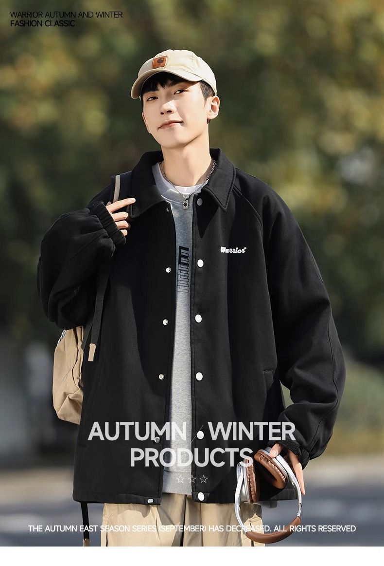 回力工装外套男加绒加厚秋冬新款宽松美式复古棒球服休闲夹克上衣