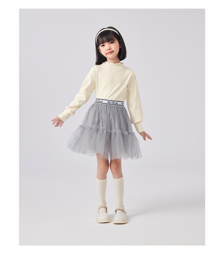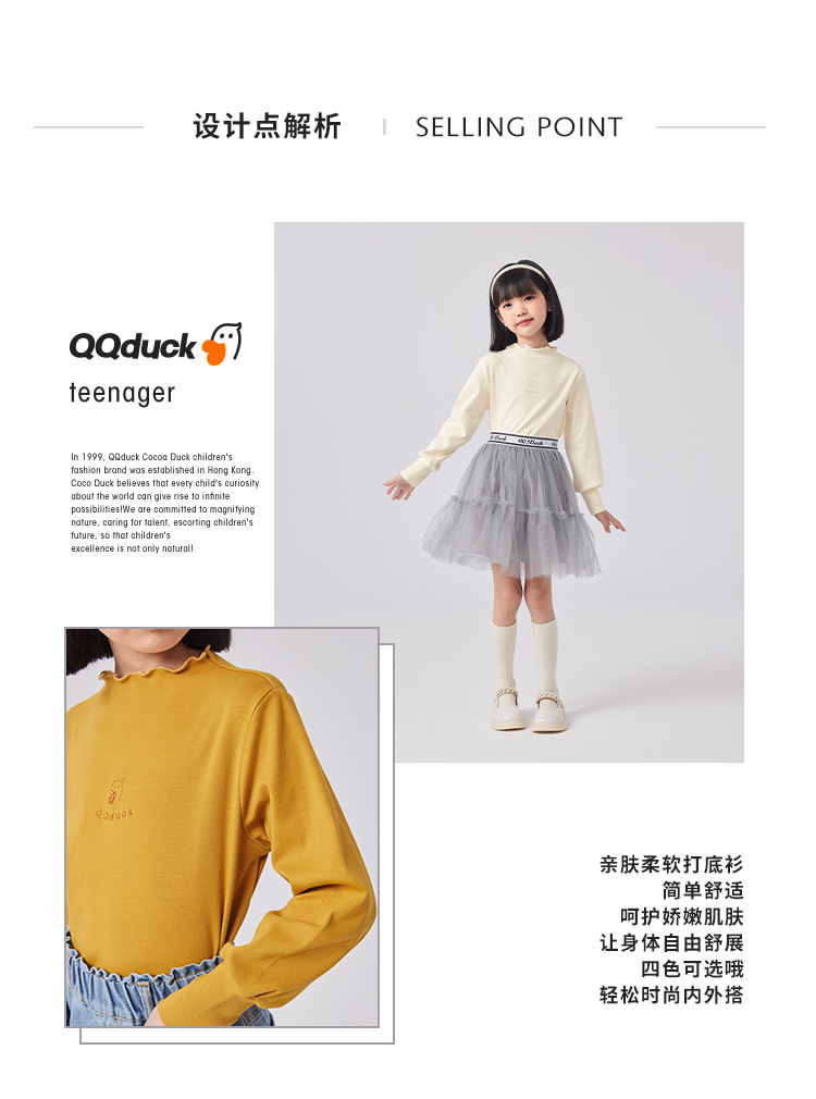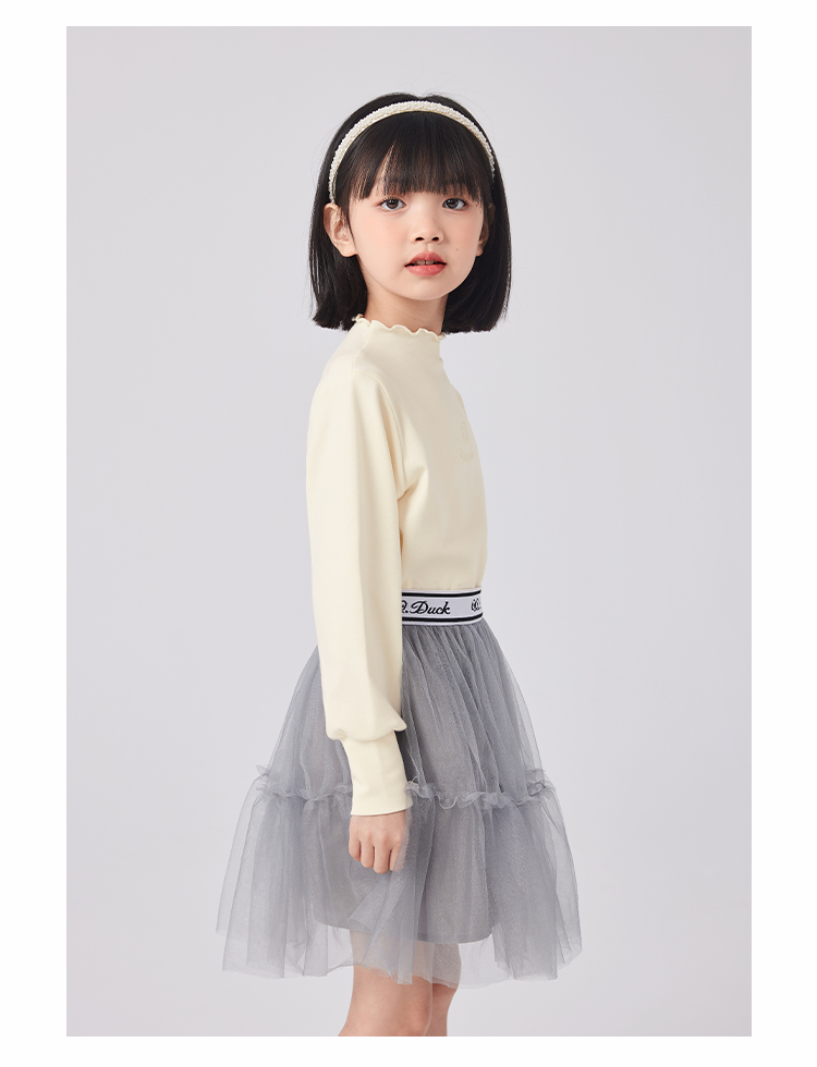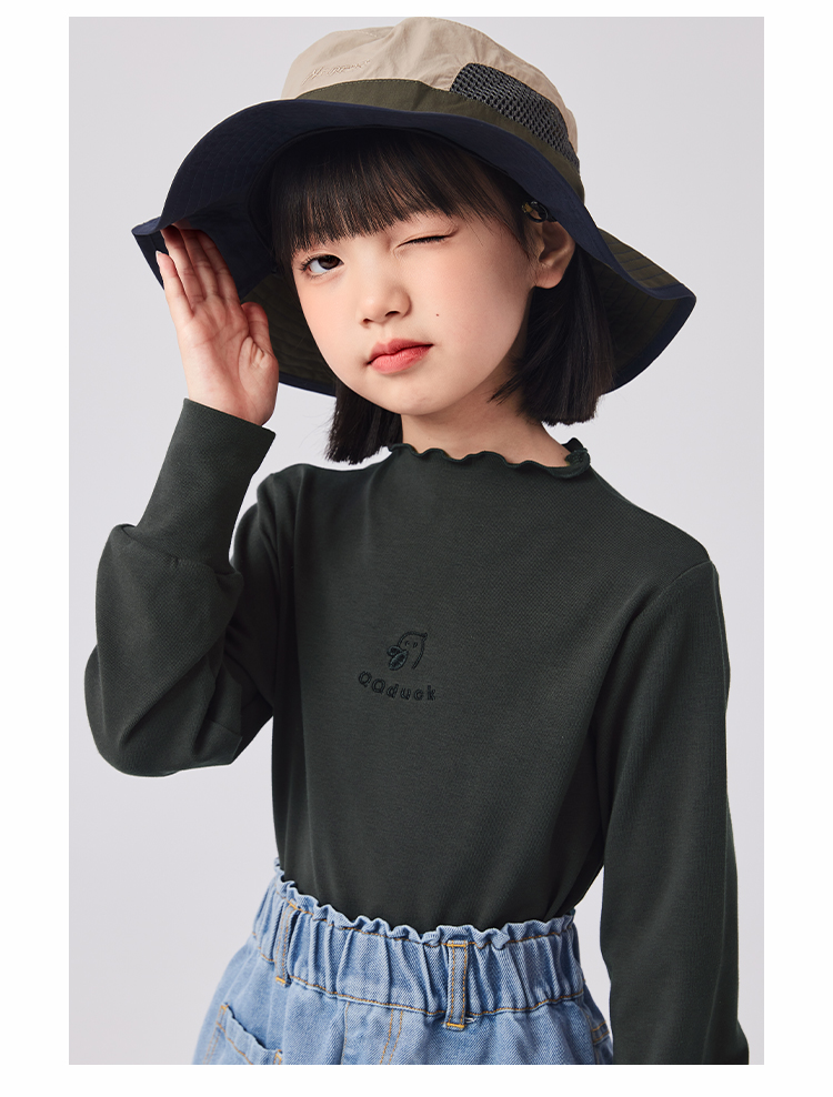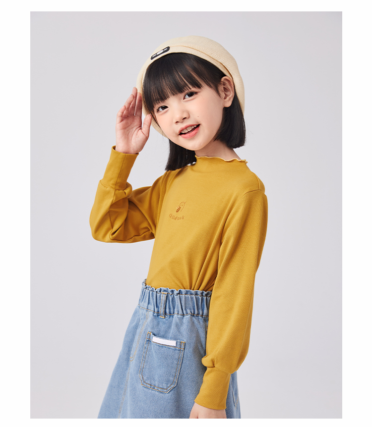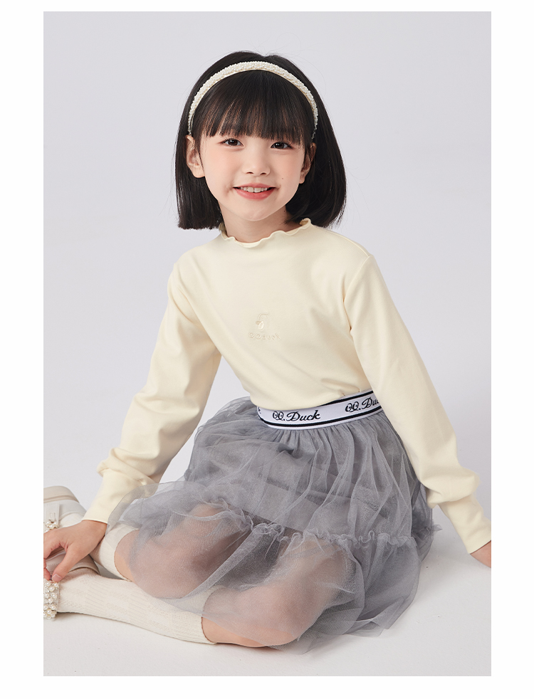 【清仓捡漏】【120-160】女童春秋款花边半高领打底衫可可鸭