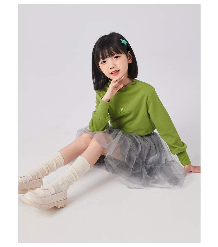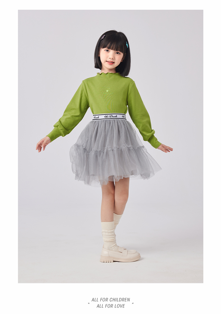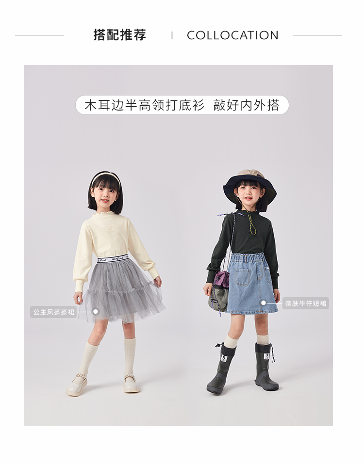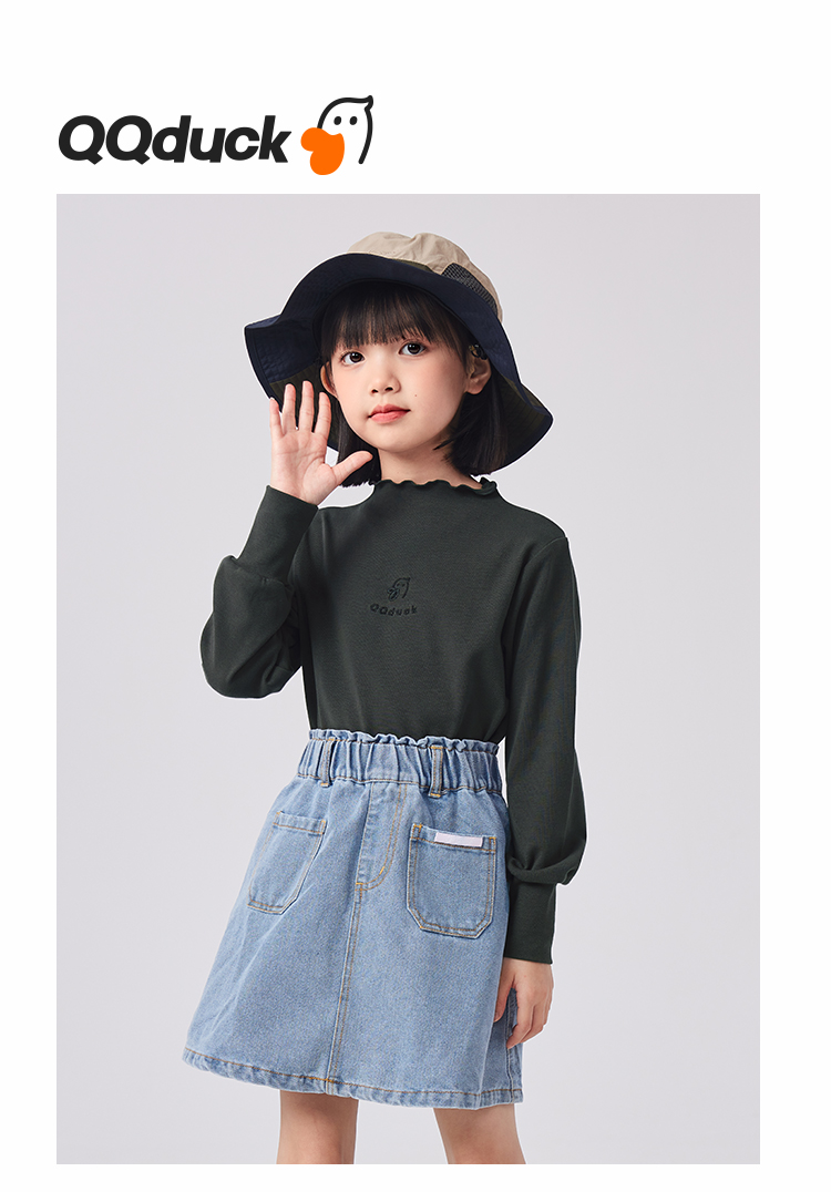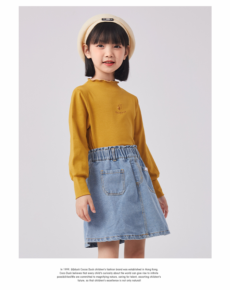 【清仓捡漏】【120-160】女童春秋款花边半高领打底衫可可鸭