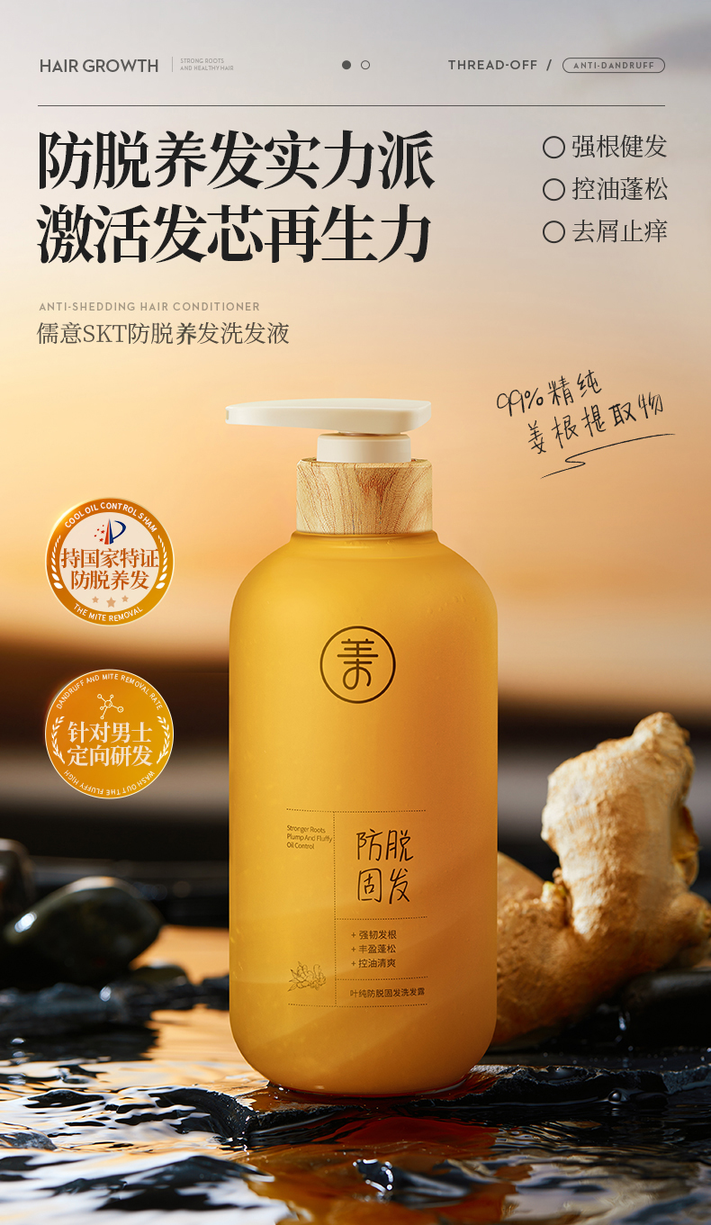 【99任选3件|均价¥33/件】儒意叶纯防脱固发洗发露500g 生姜洗发水防脱固发正品牌旗舰店控油蓬松滋养发根洗发露膏|儒意官方旗舰店