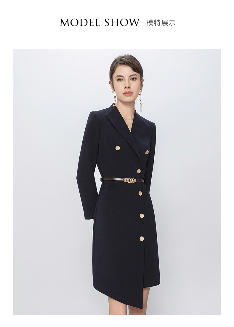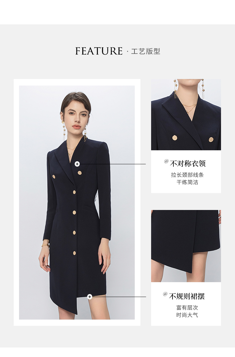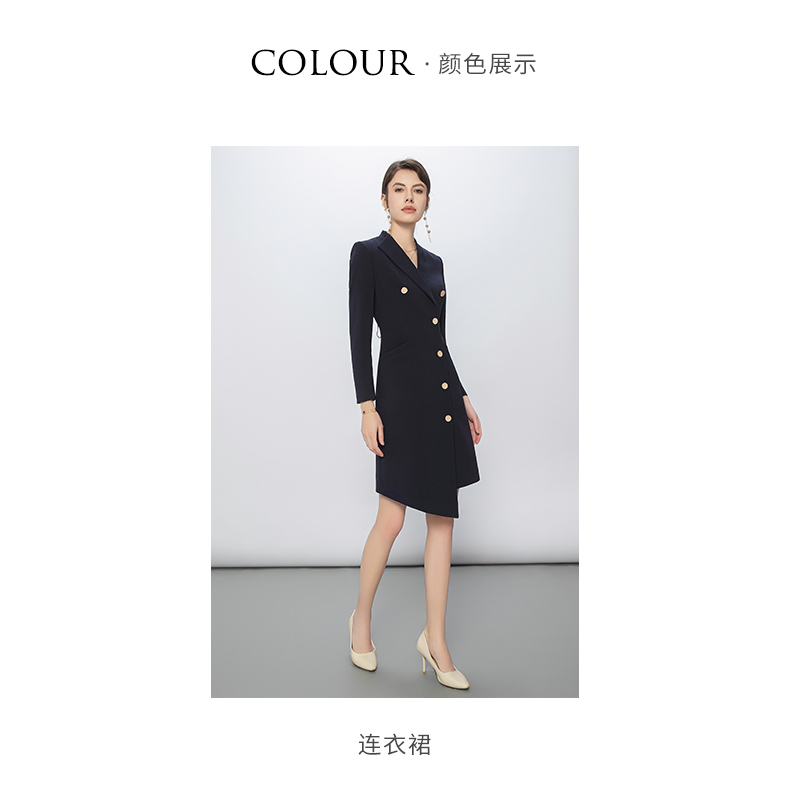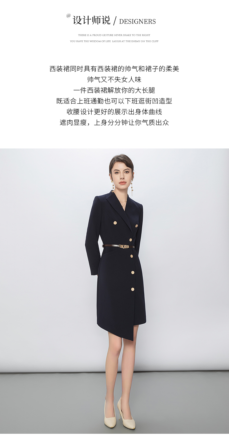 IWY/藏青色设计感西装连衣裙女修身高端商务裙子气质女神范正装Q13107