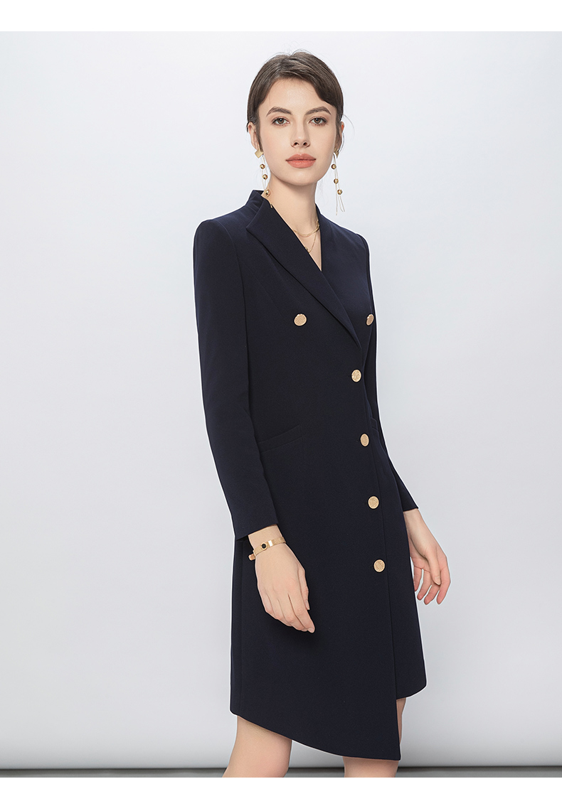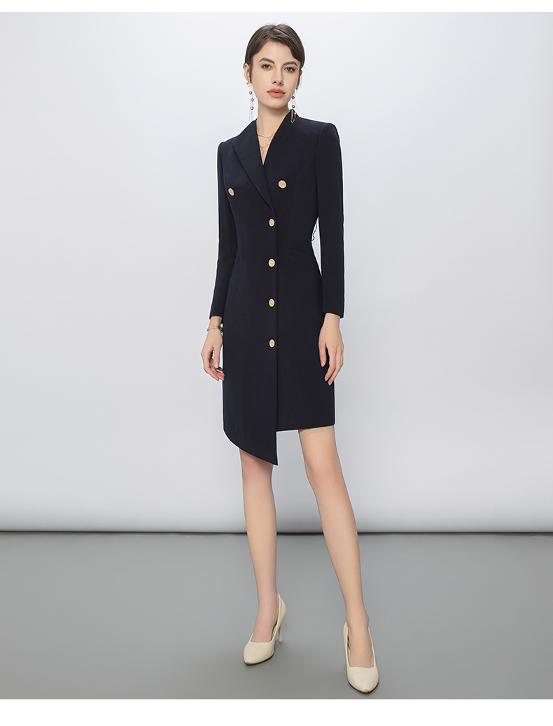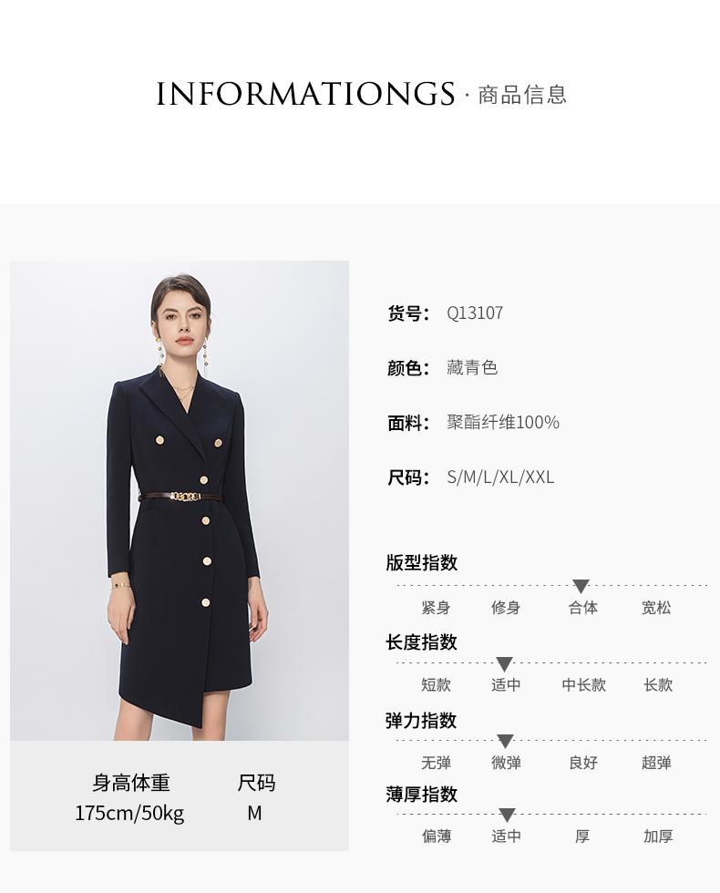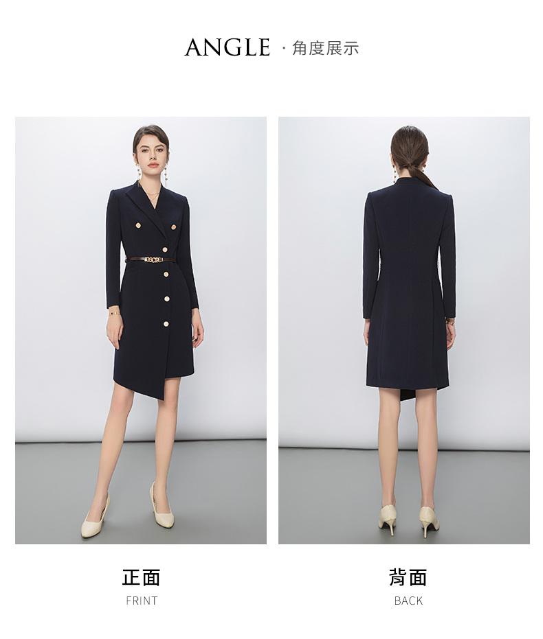 IWY/藏青色设计感西装连衣裙女修身高端商务裙子气质女神范正装Q13107