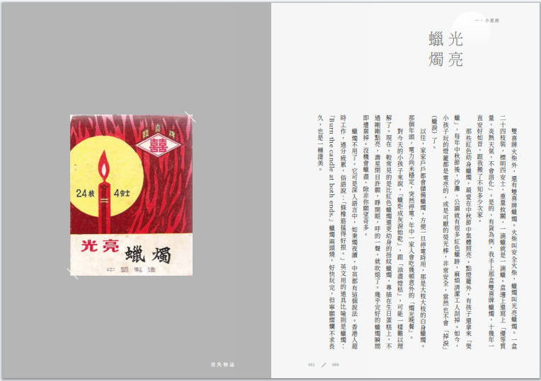 所有堅固的都煙消雲散。其中,有張揚的,有隱密的,有快速的,有緩慢的。作家潘國靈以筆和鏡頭,多年來默默觀察記錄,既有回頭撿拾舊時光的,更有親歷的現在進行式,在看見與不被看見之間,作者以詩化的細膩之筆,捕捉消失靈光閃現的剎那,鋪成一幅失落拼圖,記那已逝、淡出與將去的。全書分八個章節,涵蓋各式微物、人物、地方、光影、肌理、質感,打開消失的維度,書寫其多重歧義,由物而思及消失的本質。《消失物誌》融知性與感性,記城中消失物事一百件,給一個城市的死與生。