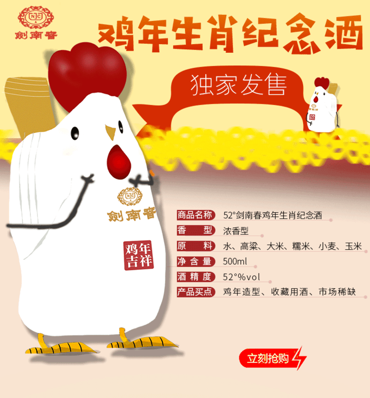 52度剑南春(鸡年吉祥)500ml(2017年老酒) 单瓶