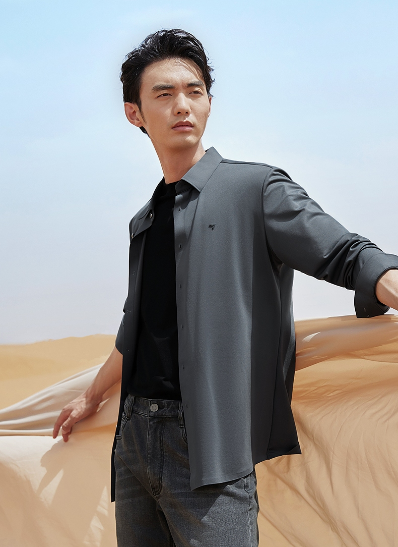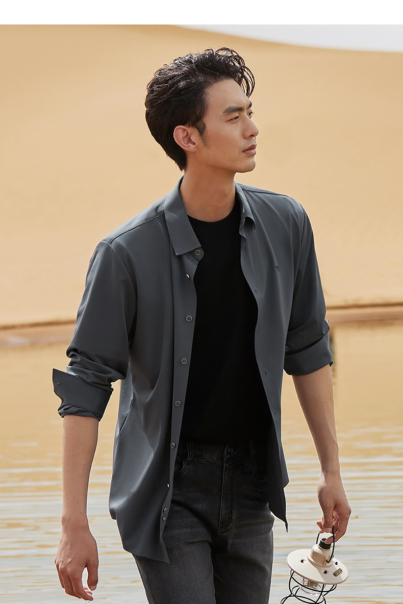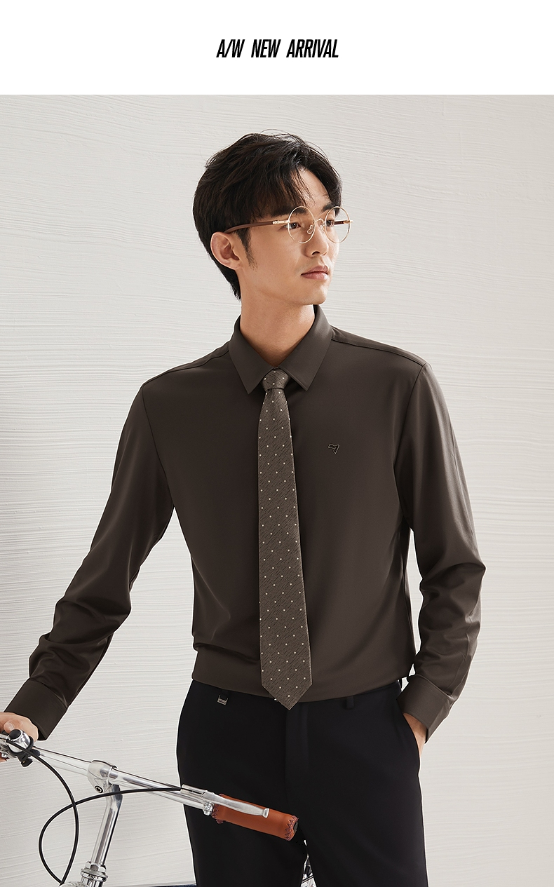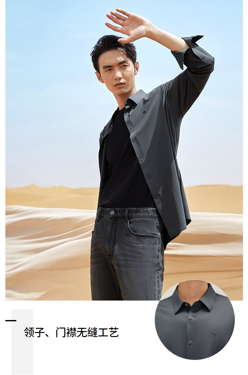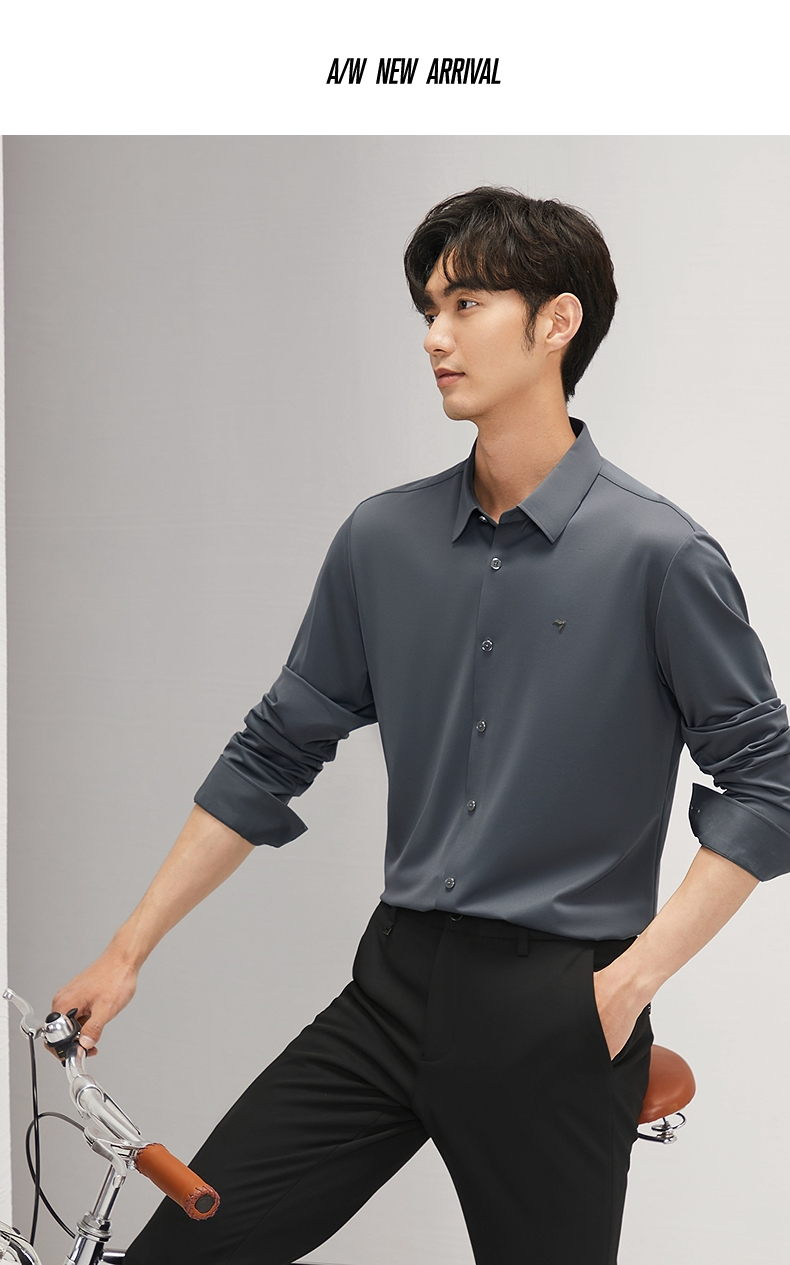 【含羊毛】柒牌长袖衬衫男2024秋季新款商务休闲垂感翻领百搭衬衣 127A71010