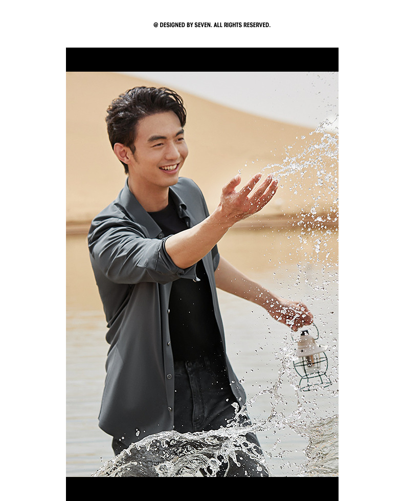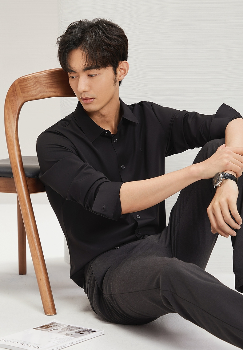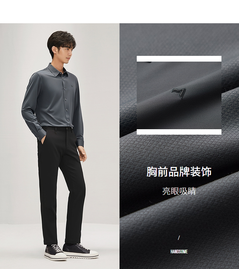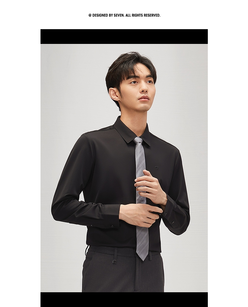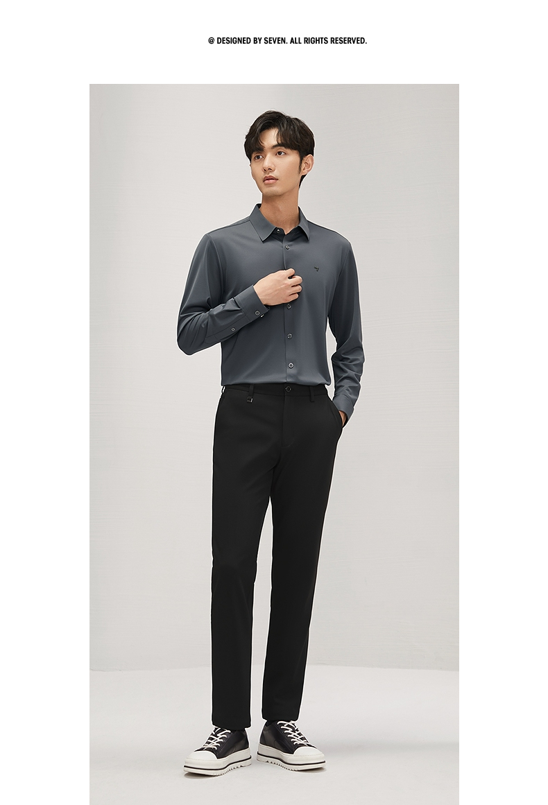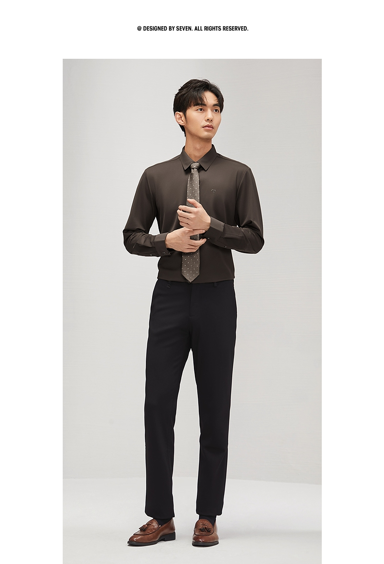 【含羊毛】柒牌长袖衬衫男2024秋季新款商务休闲垂感翻领百搭衬衣 127A71010