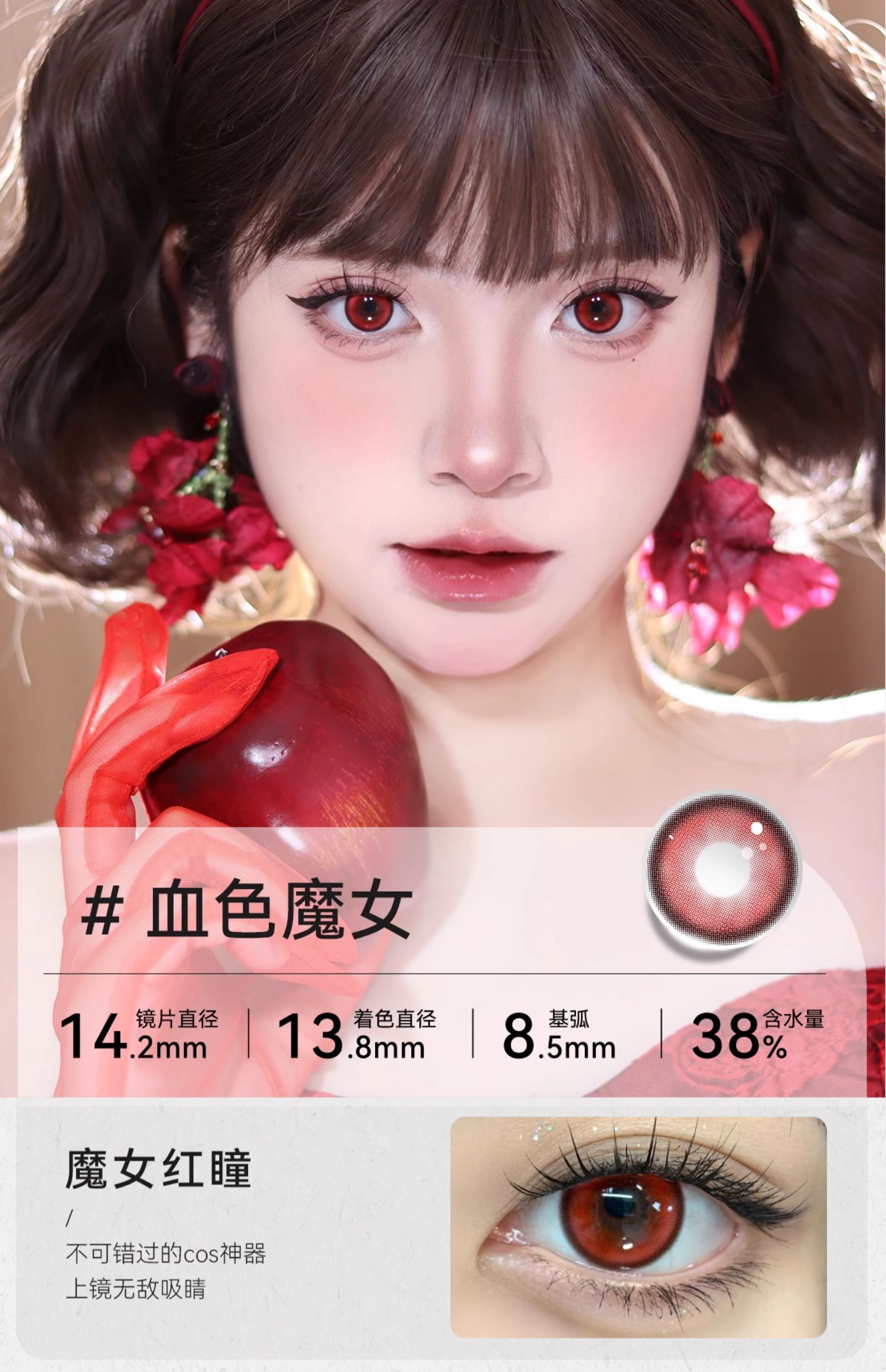 【媞娜日抛】Tina媞娜美瞳cos日抛大直径混血蔷薇红色隐形眼镜次抛紫蓝金