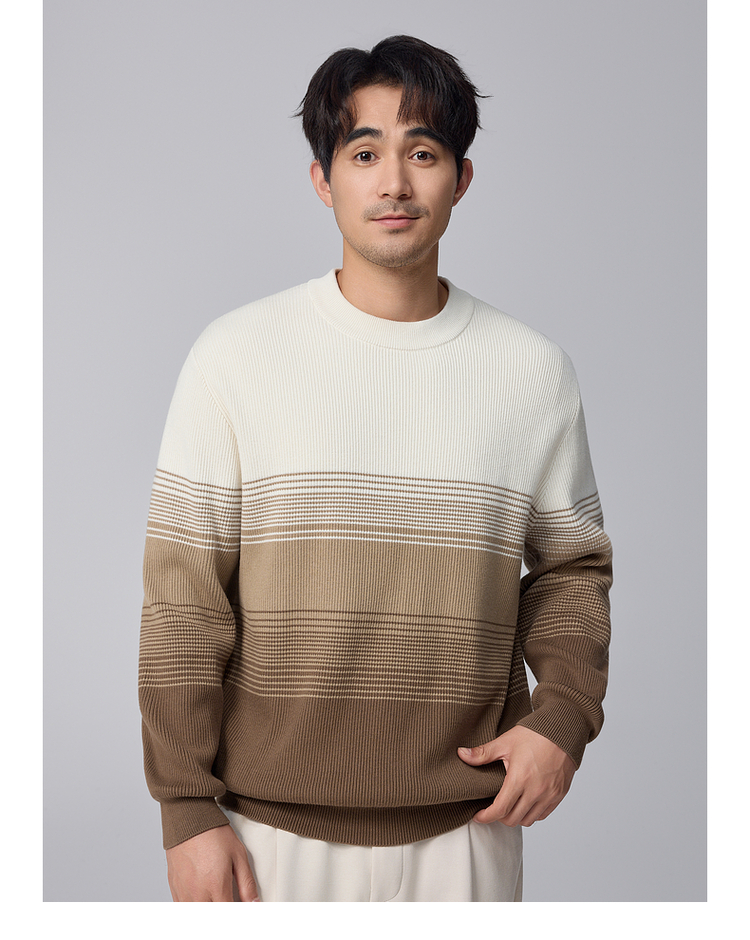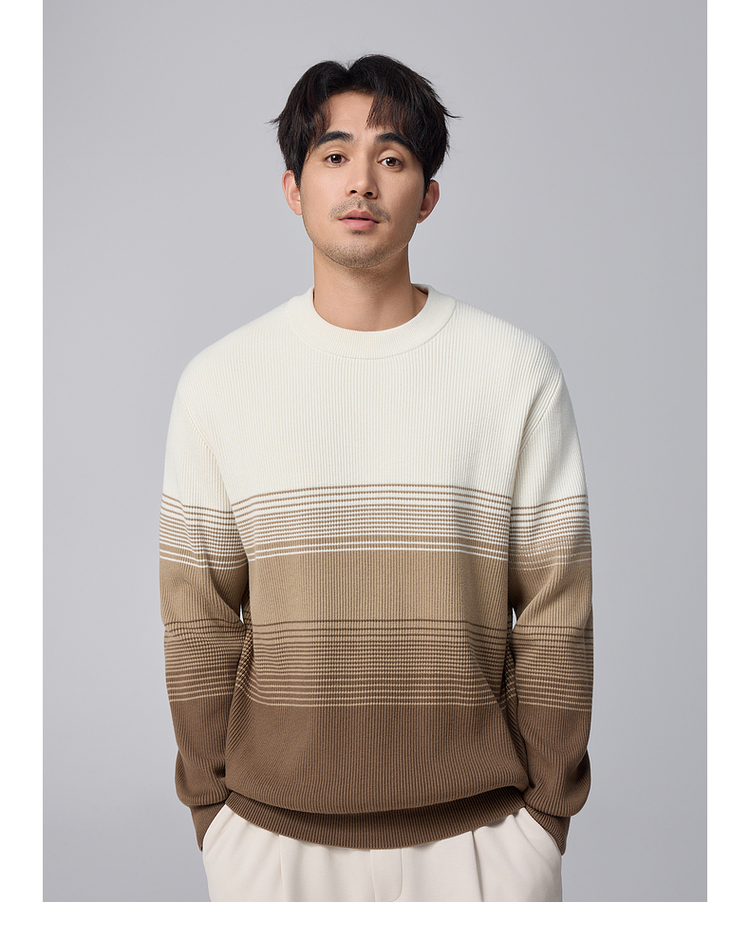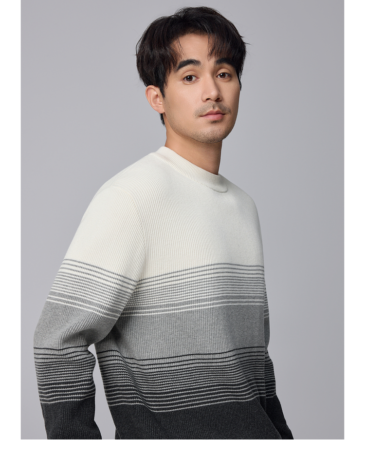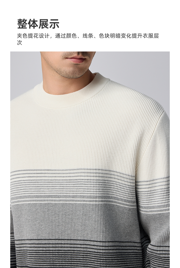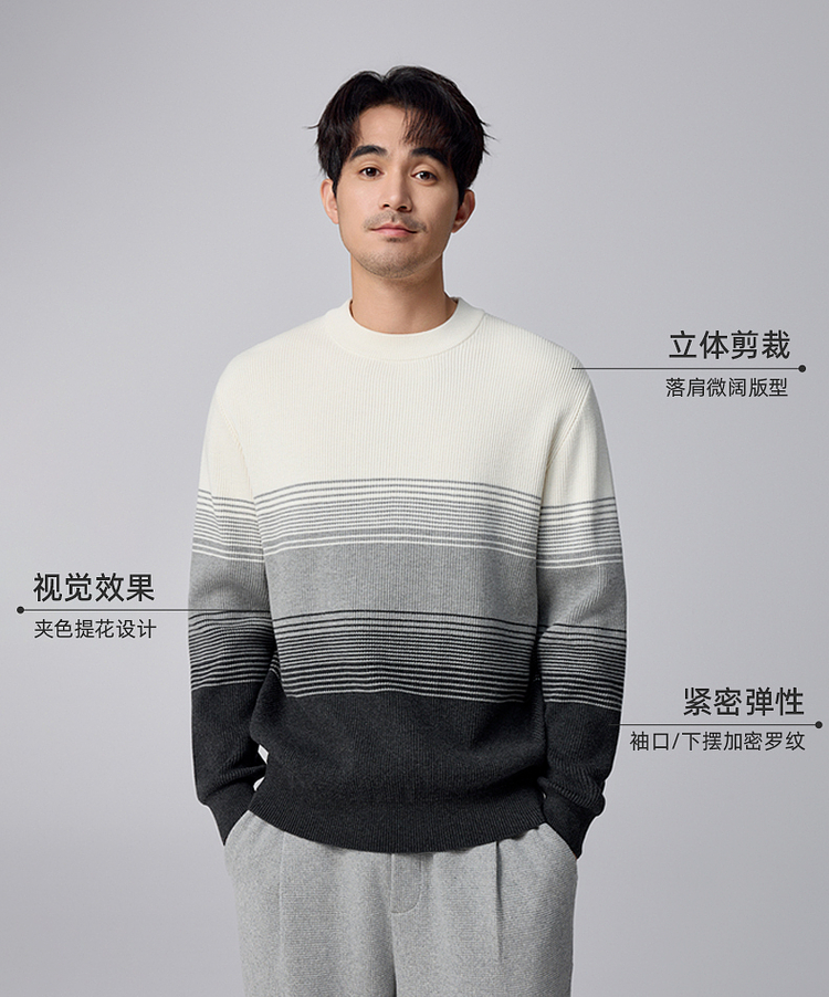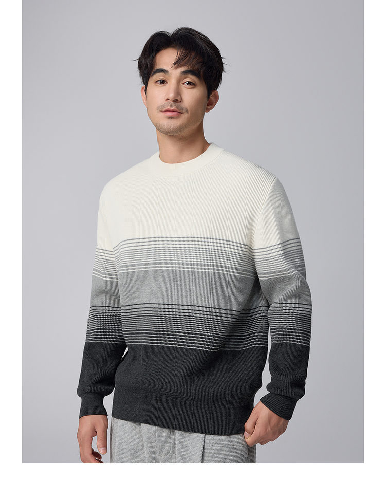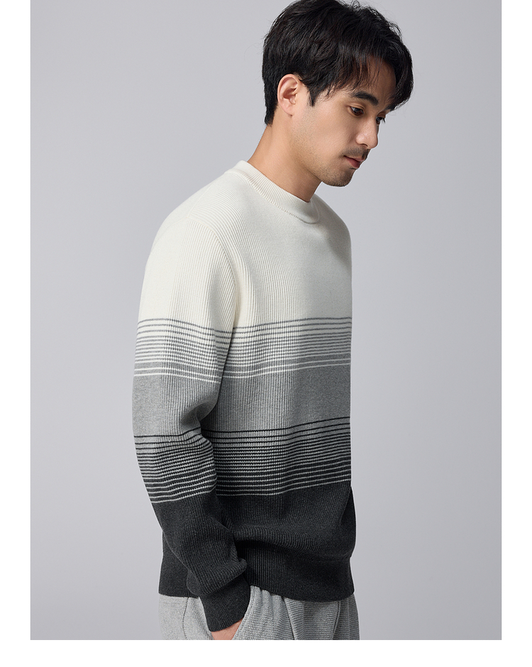 墨麦客男装渐变条纹男士圆领针织衫2024冬季新款休闲肌理感毛衣男