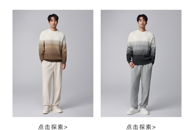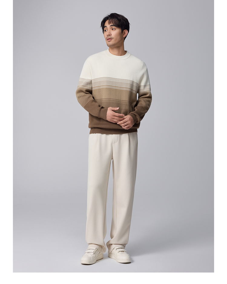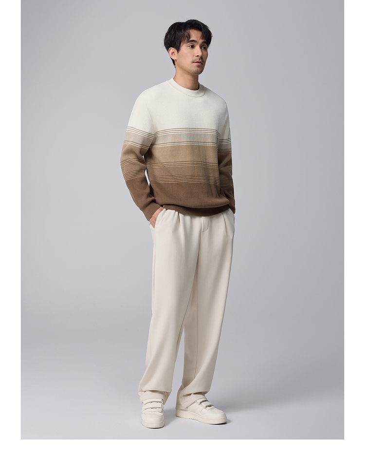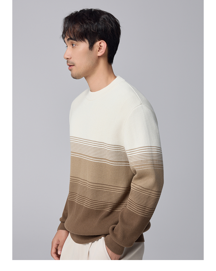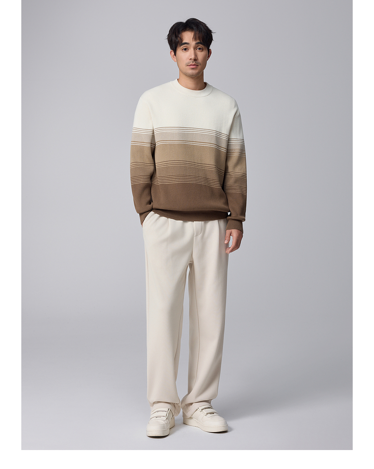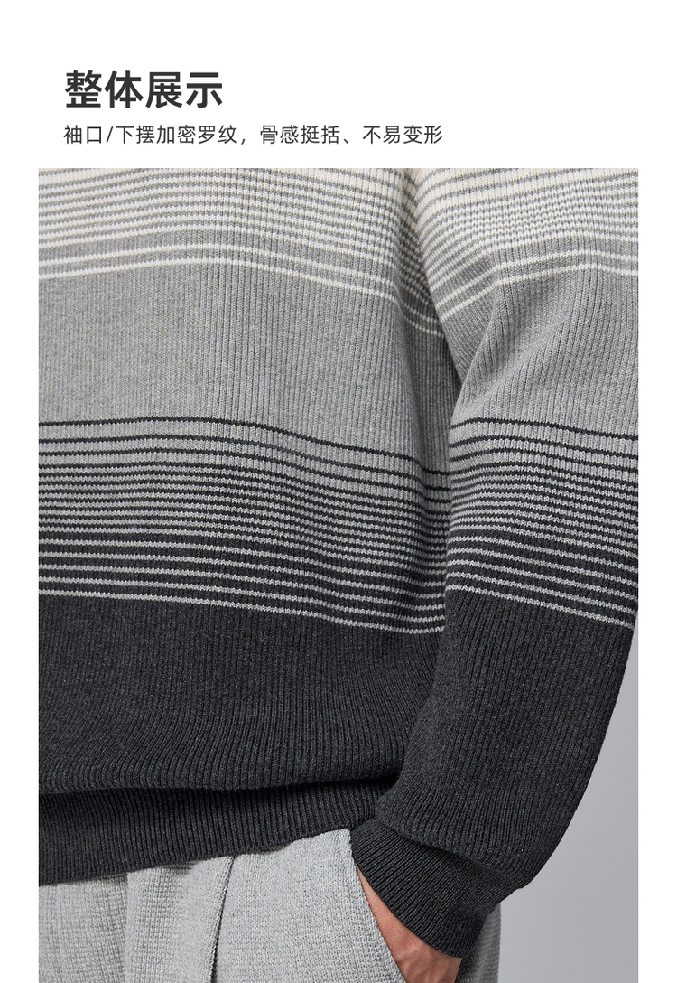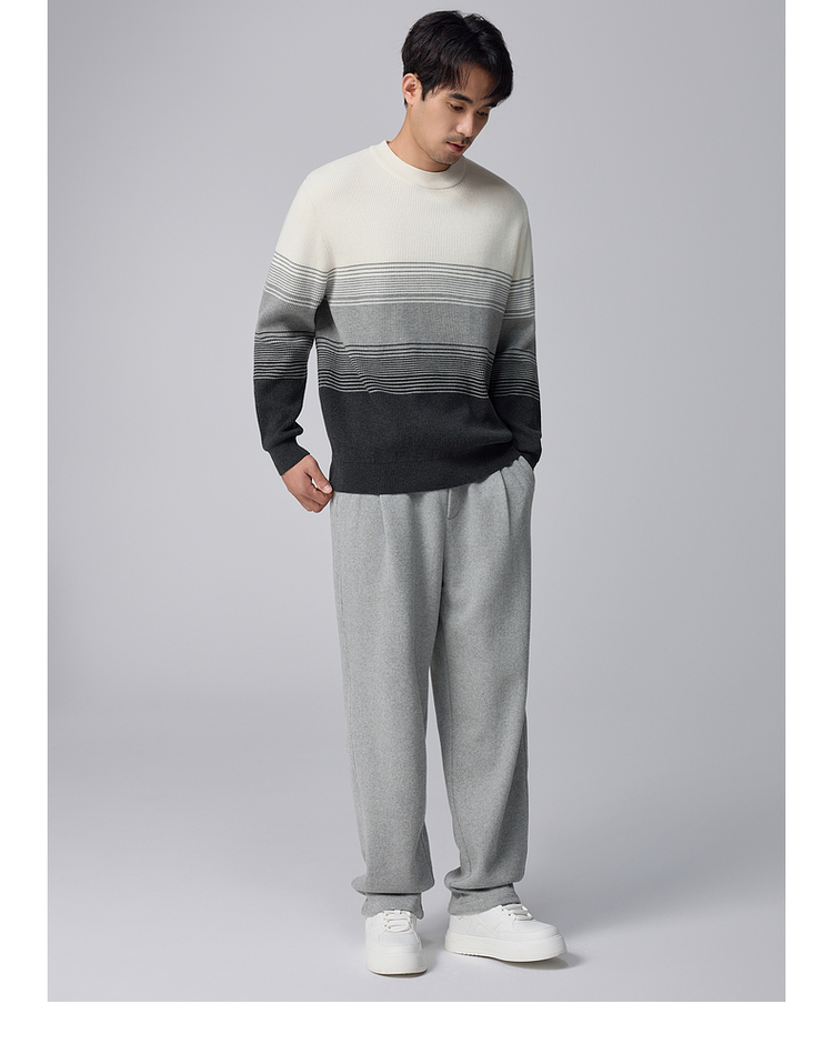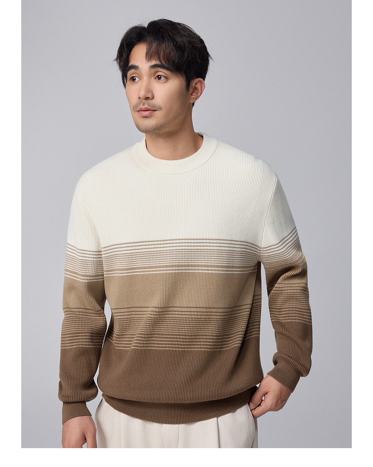 墨麦客男装渐变条纹男士圆领针织衫2024冬季新款休闲肌理感毛衣男