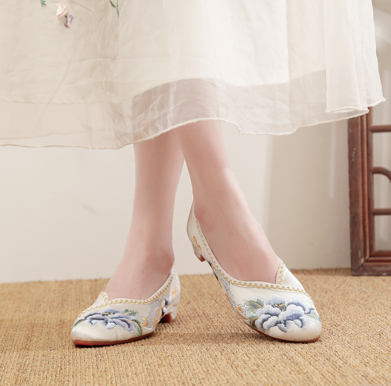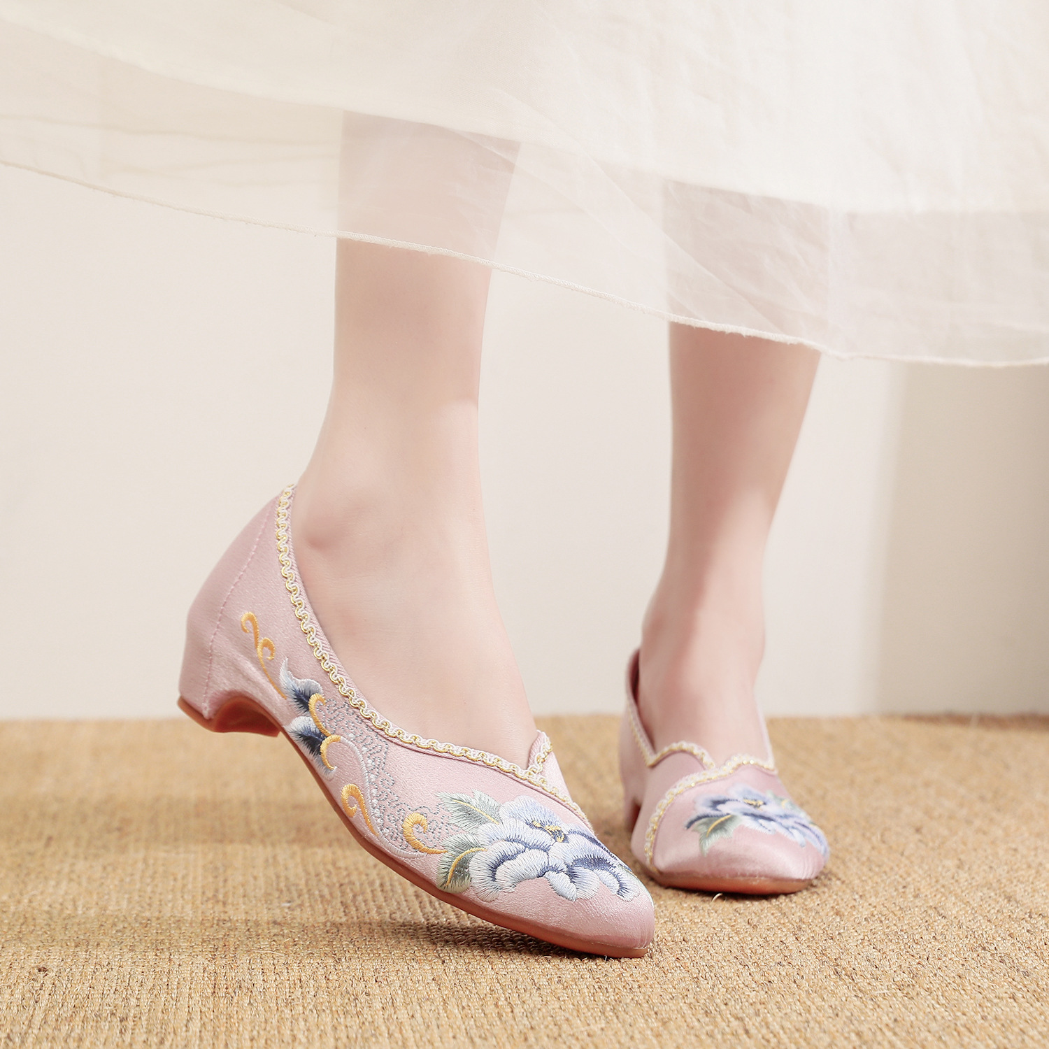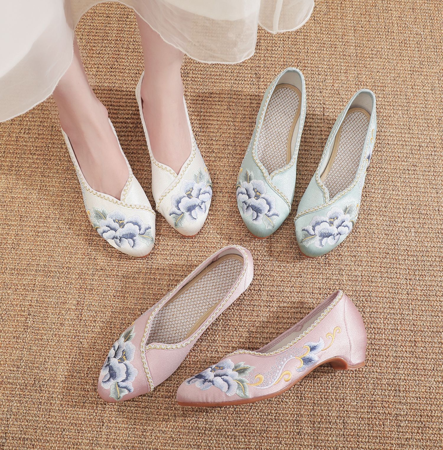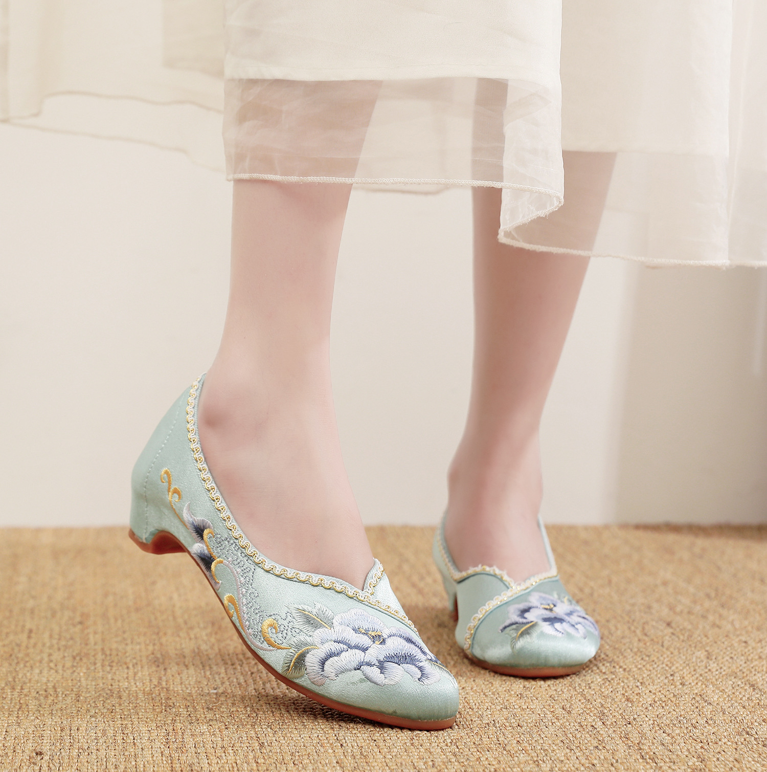 【青玄】淡雅古风尖头女鞋,老北京中跟布鞋百搭旗袍鞋MZ-青玄