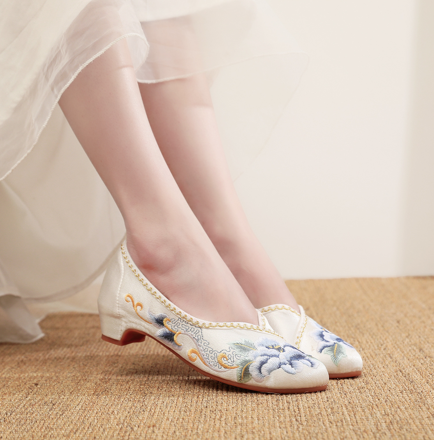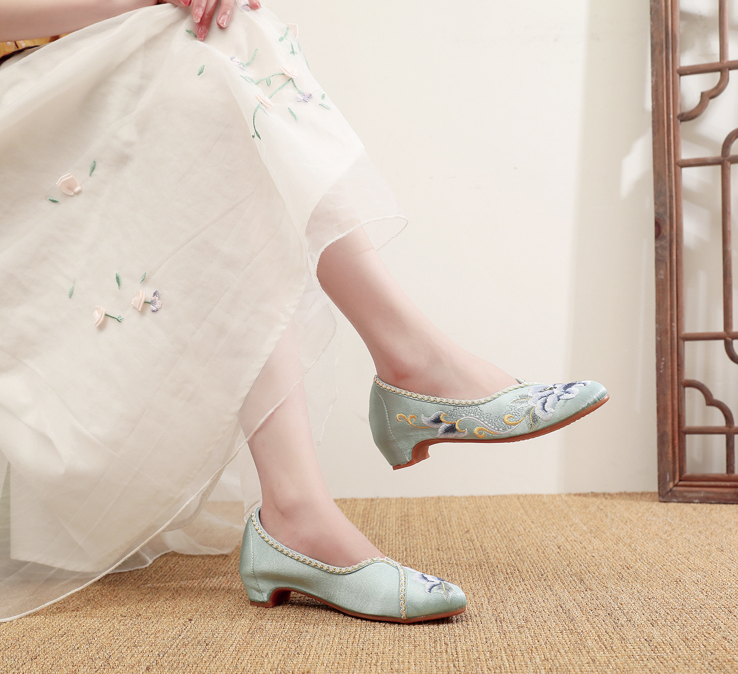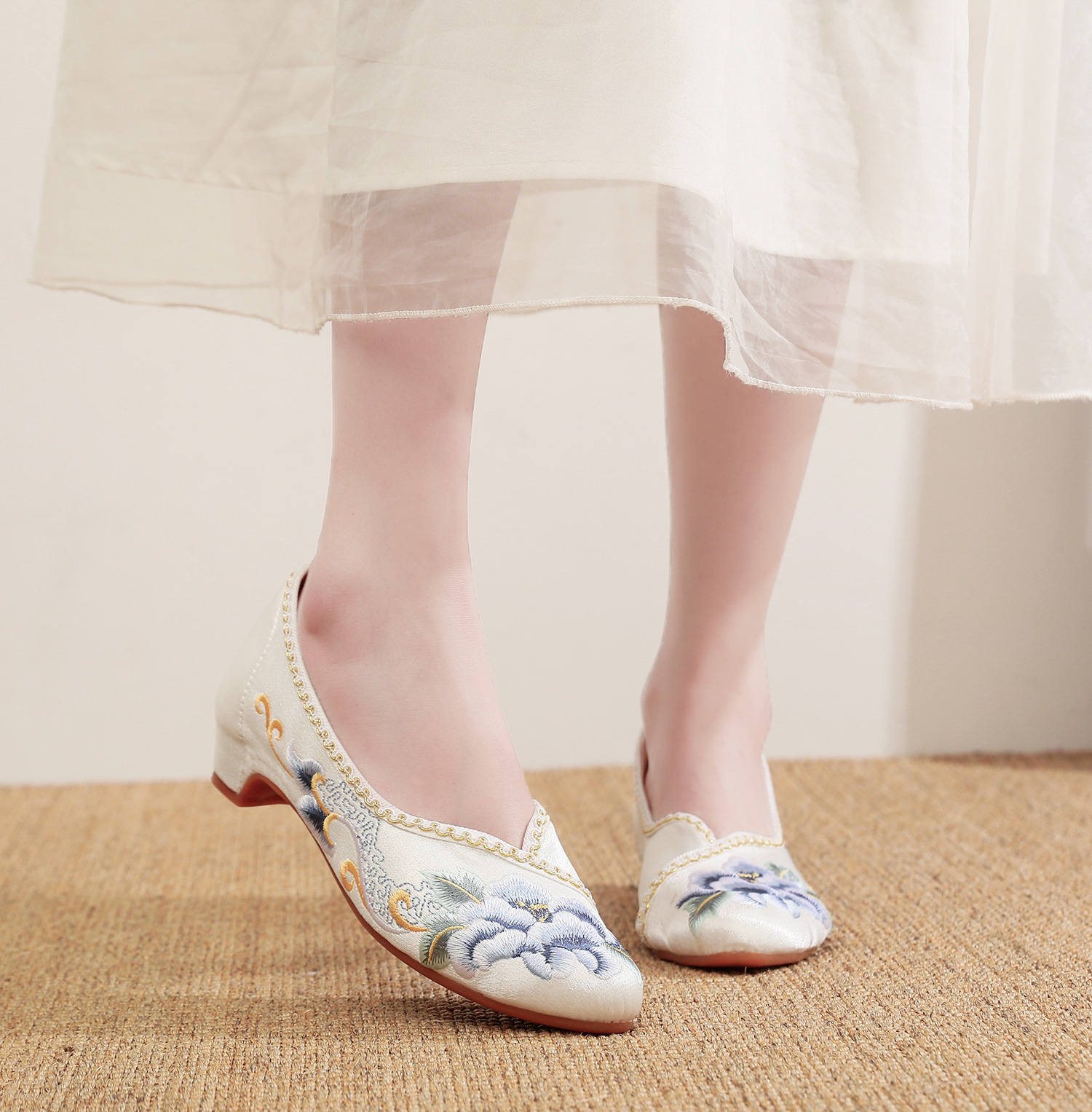 【青玄】淡雅古风尖头女鞋,老北京中跟布鞋百搭旗袍鞋MZ-青玄