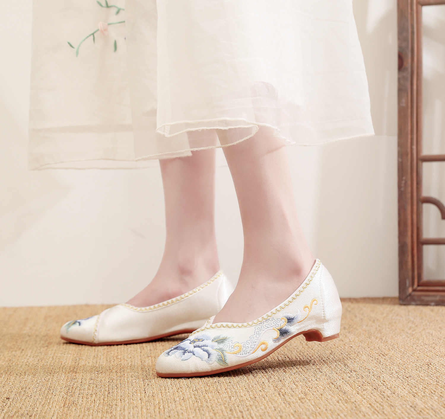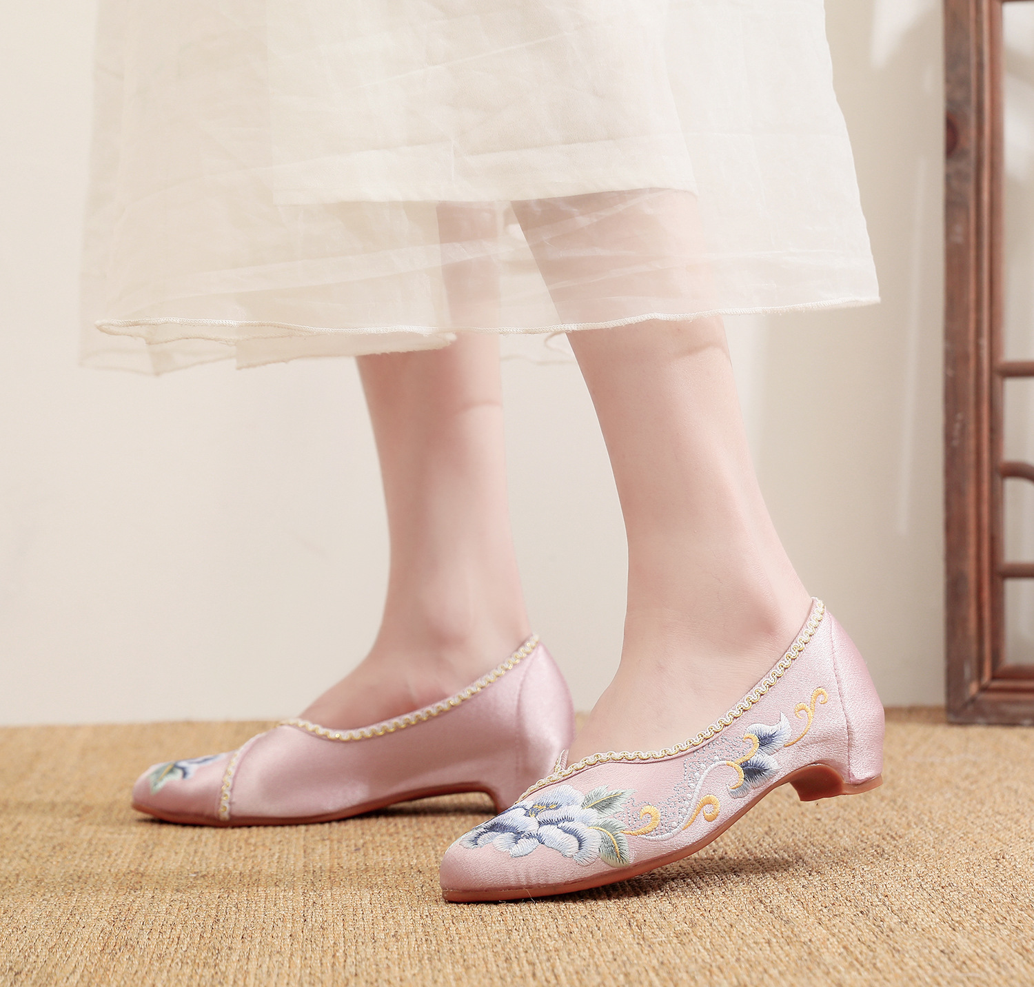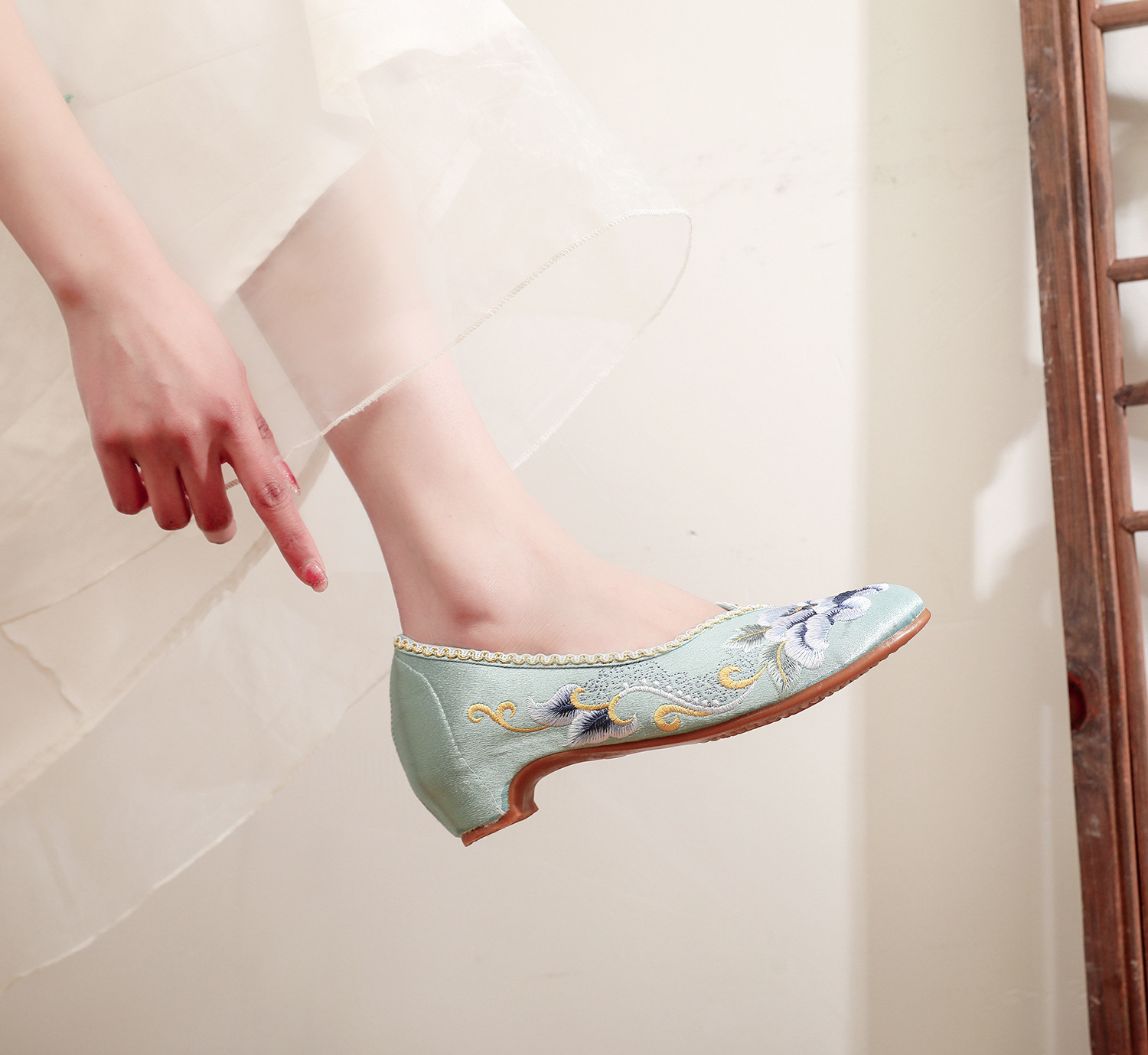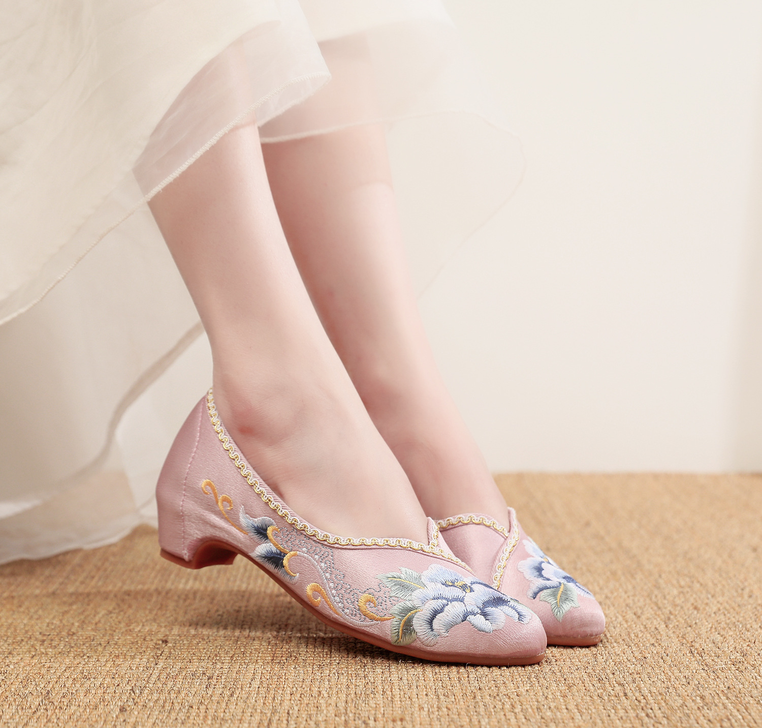 【青玄】淡雅古风尖头女鞋,老北京中跟布鞋百搭旗袍鞋MZ-青玄