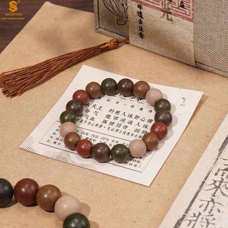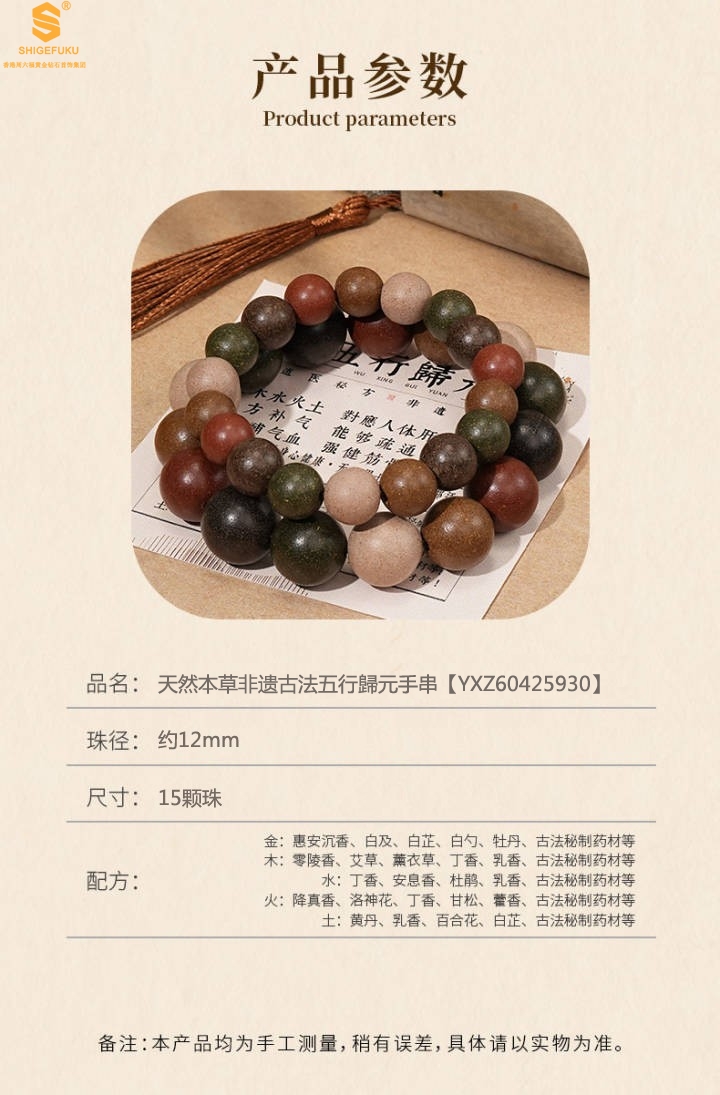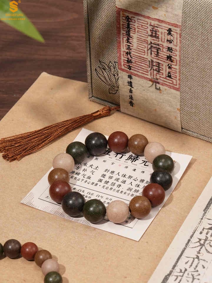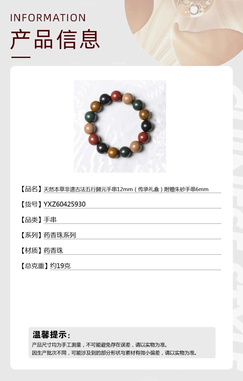 【品名】天然本草非遗古法五行歸元手串12mm(传承礼盒)附赠朱砂手串6mm