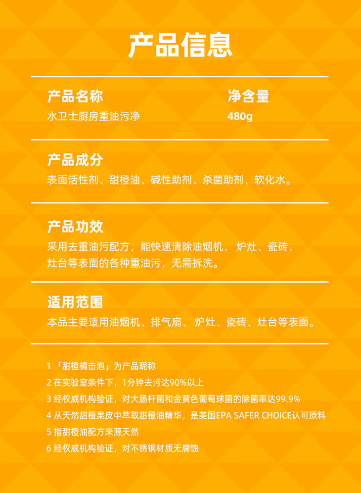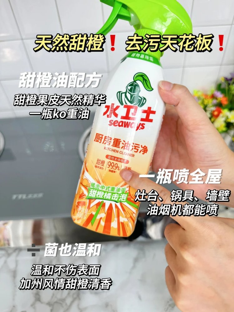 【水卫士厨房重油污净】甜橙橘击泡,1分钟橘击中式重油污!植物基溶油配方,一喷一擦解决油污困扰!!厨房油污问题真是让每个家庭头疼每次用抹布擦掉还是黏糊糊的而且味道很难闻~👃😫现在去油污救星来了,墙裂安利这个水卫士厨房重油污净超高性价比厨房油污净!大师级别的测评!赶快来薅羊毛啦~厨房重油污净!1分钟左右就可终结厨房油污!