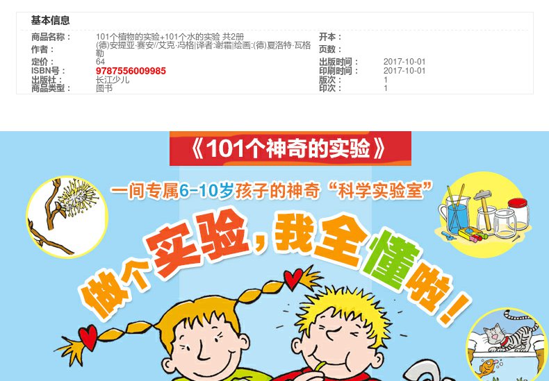新华书店正版 101个神奇的实验全套共2册 101个水的实验+植物的实验儿童少儿科普百科启蒙认知中小学生物理科学教辅7-12岁畅销书籍