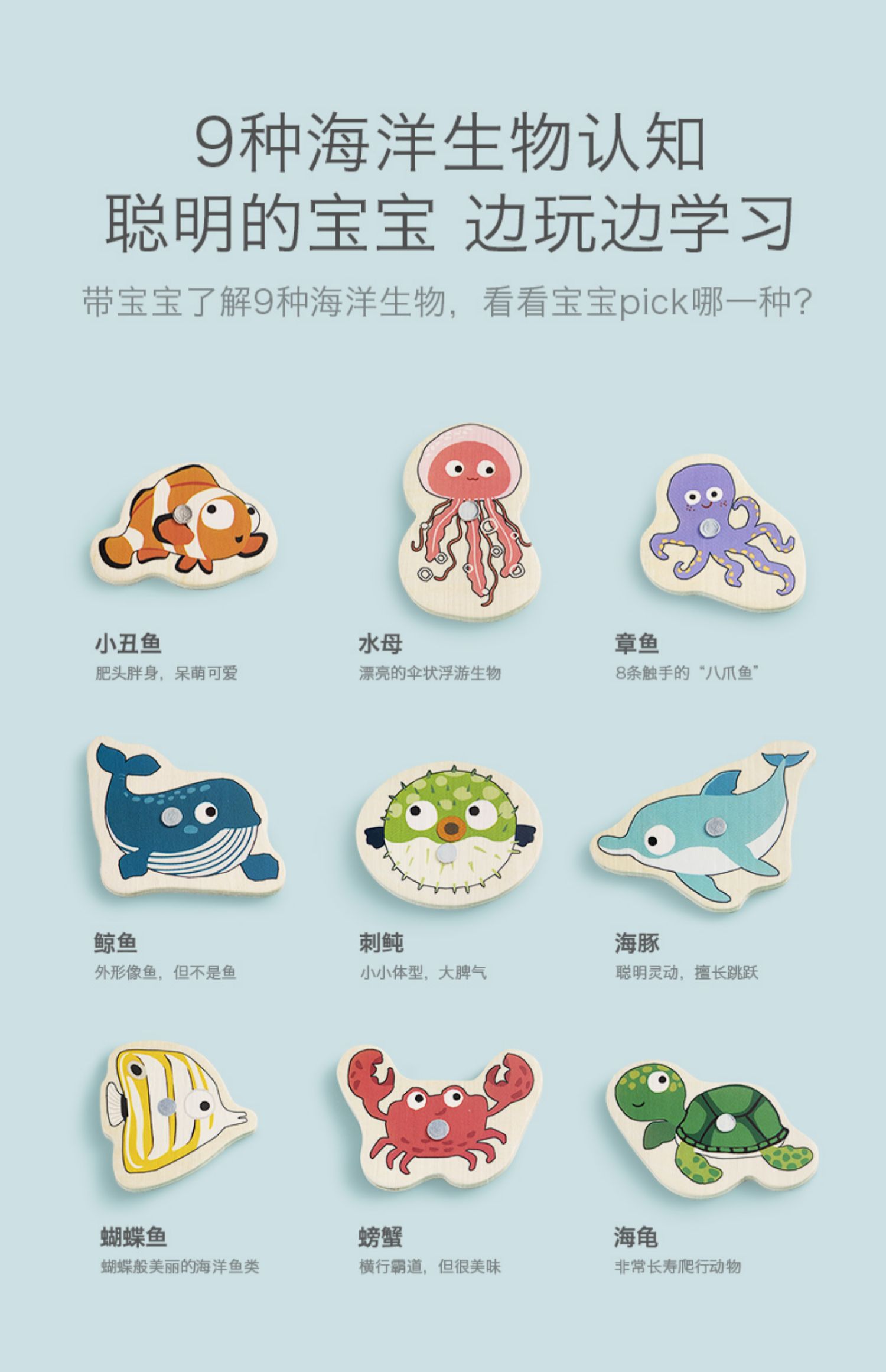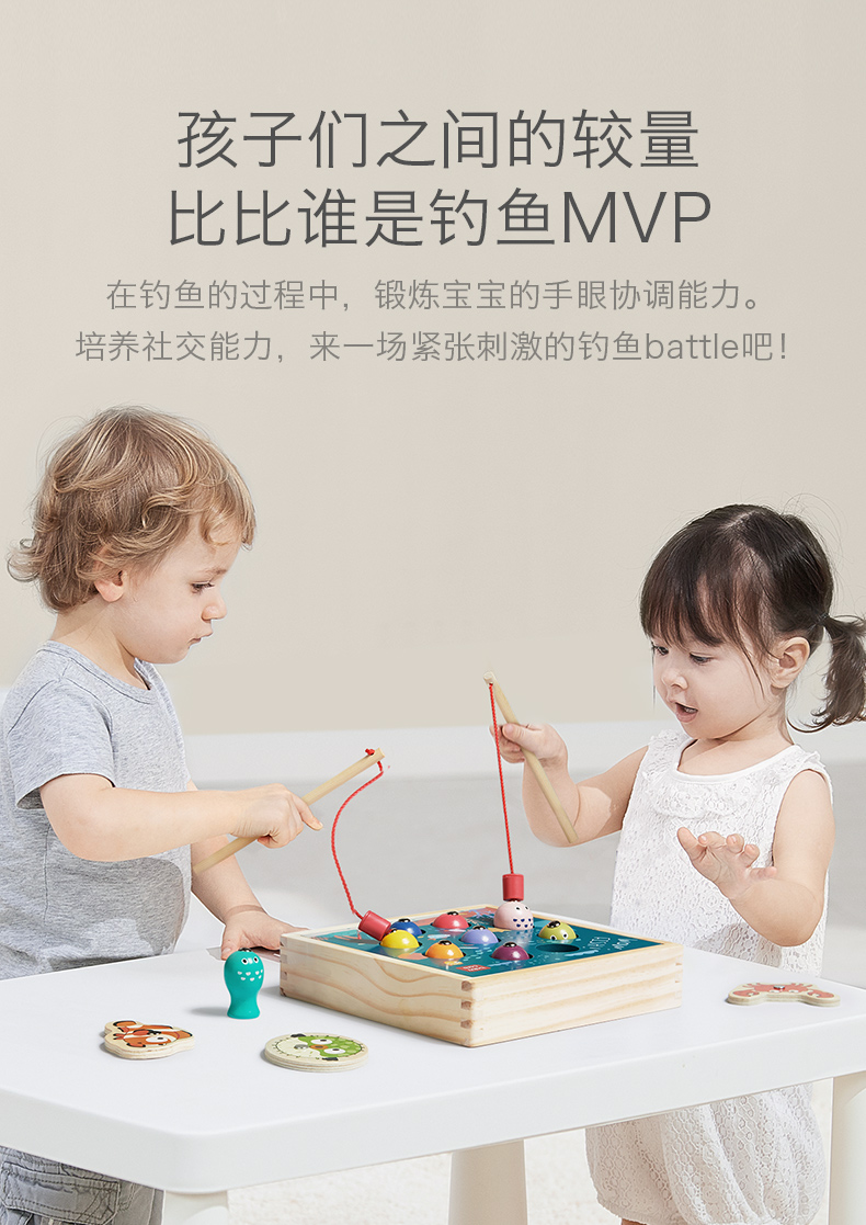 【babycare好物集】儿童钓鱼玩具木质磁性鱼一至二周岁男孩宝宝智力动脑益智