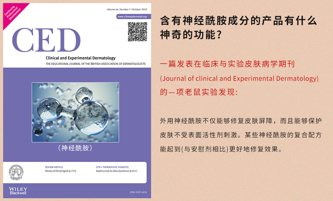 在皮肤病学期刊 《CLINICAL AND EXPERIMENTAL DERMATOLOGY》中发表了含有神经酰胺成分的产品的神奇功能。