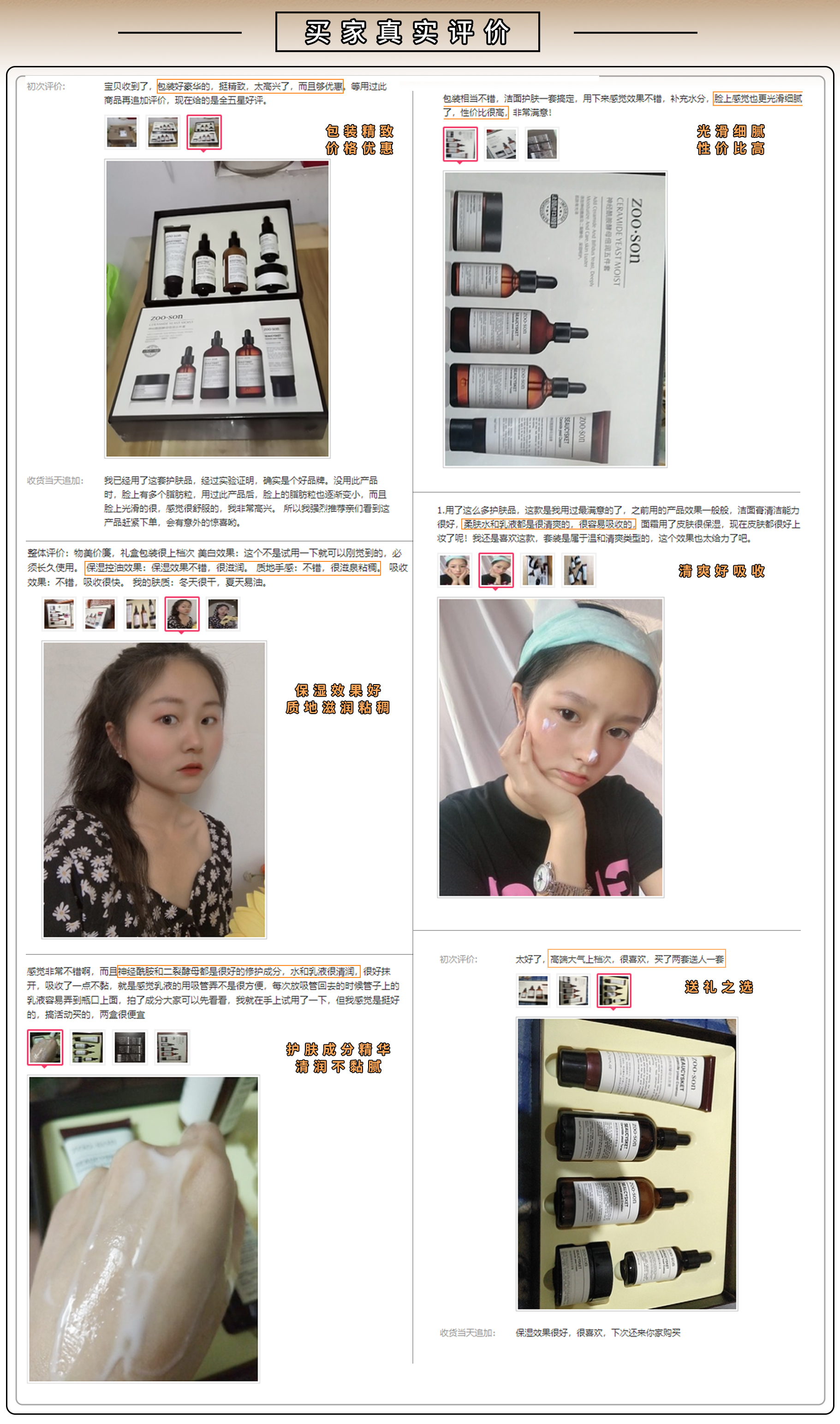 抛开原料、功效不说,套盒产品的质地+肤感同样没得挑,款款好评如潮。