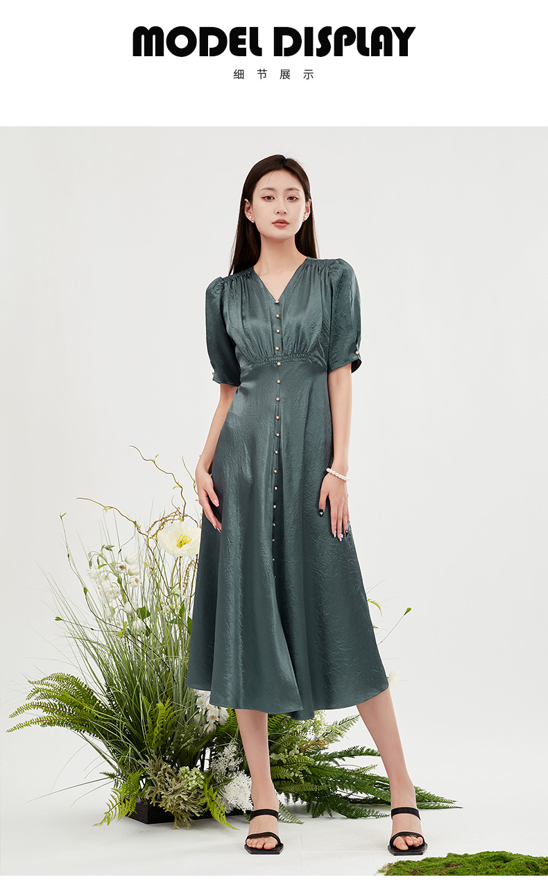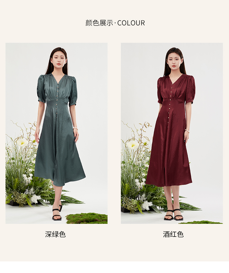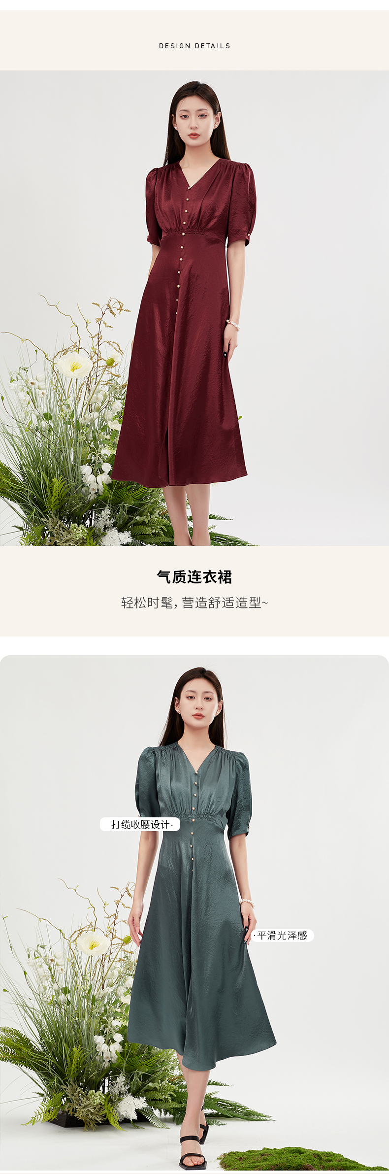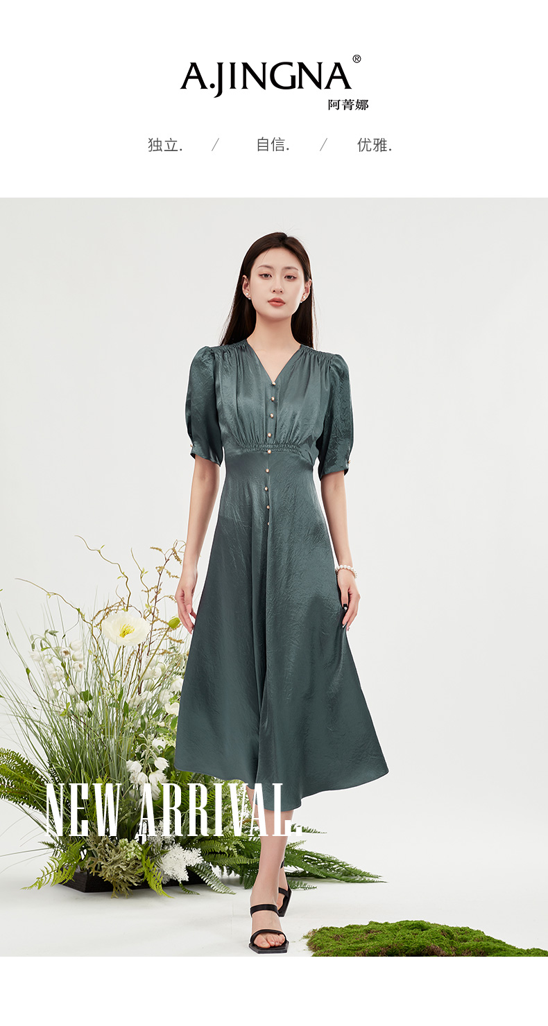 【商场同款】阿菁娜V领设计感收腰气质连衣裙A28X112085