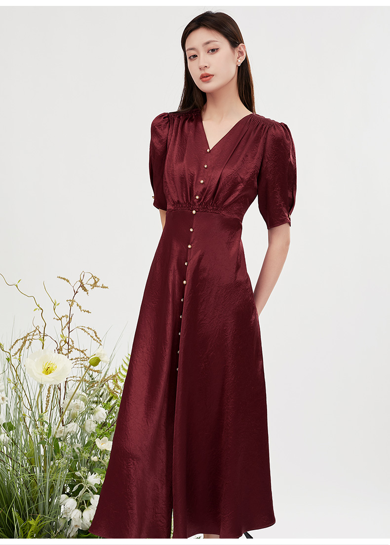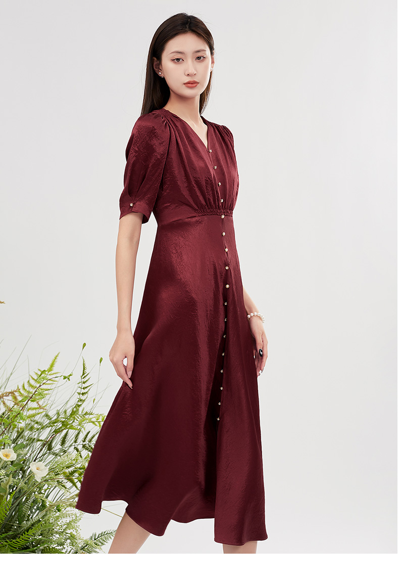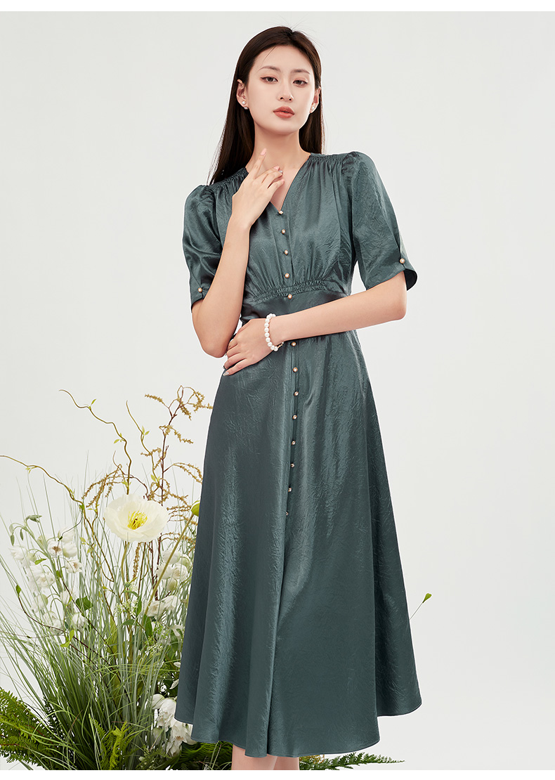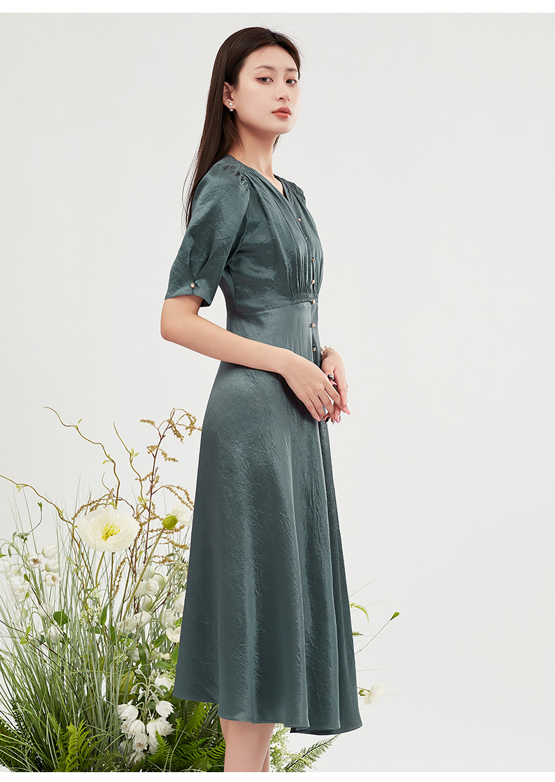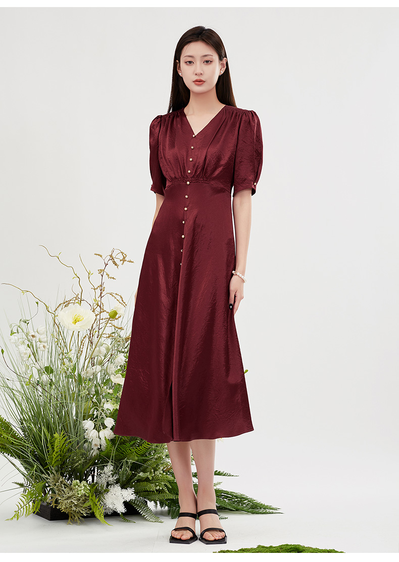 【商场同款】阿菁娜V领设计感收腰气质连衣裙A28X112085