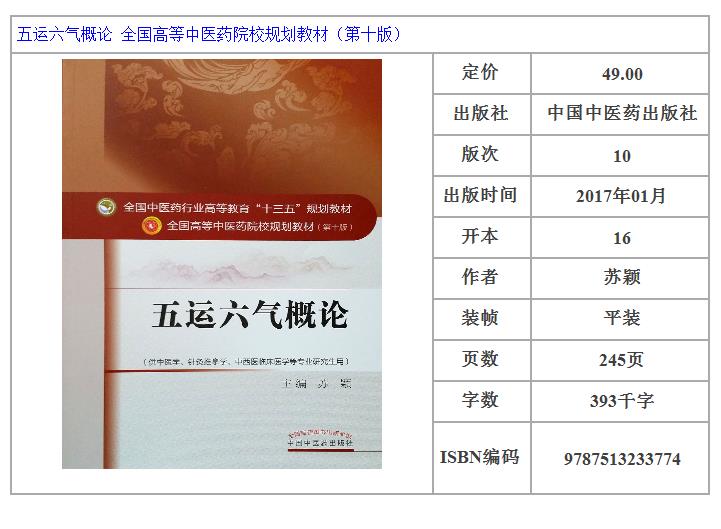 五运六气概论 第10十版 全国高等中医药院校规划教材 第十10版 供中医学 针灸推拿学等专业用 苏颖主编 中国中医药出版社指导用书