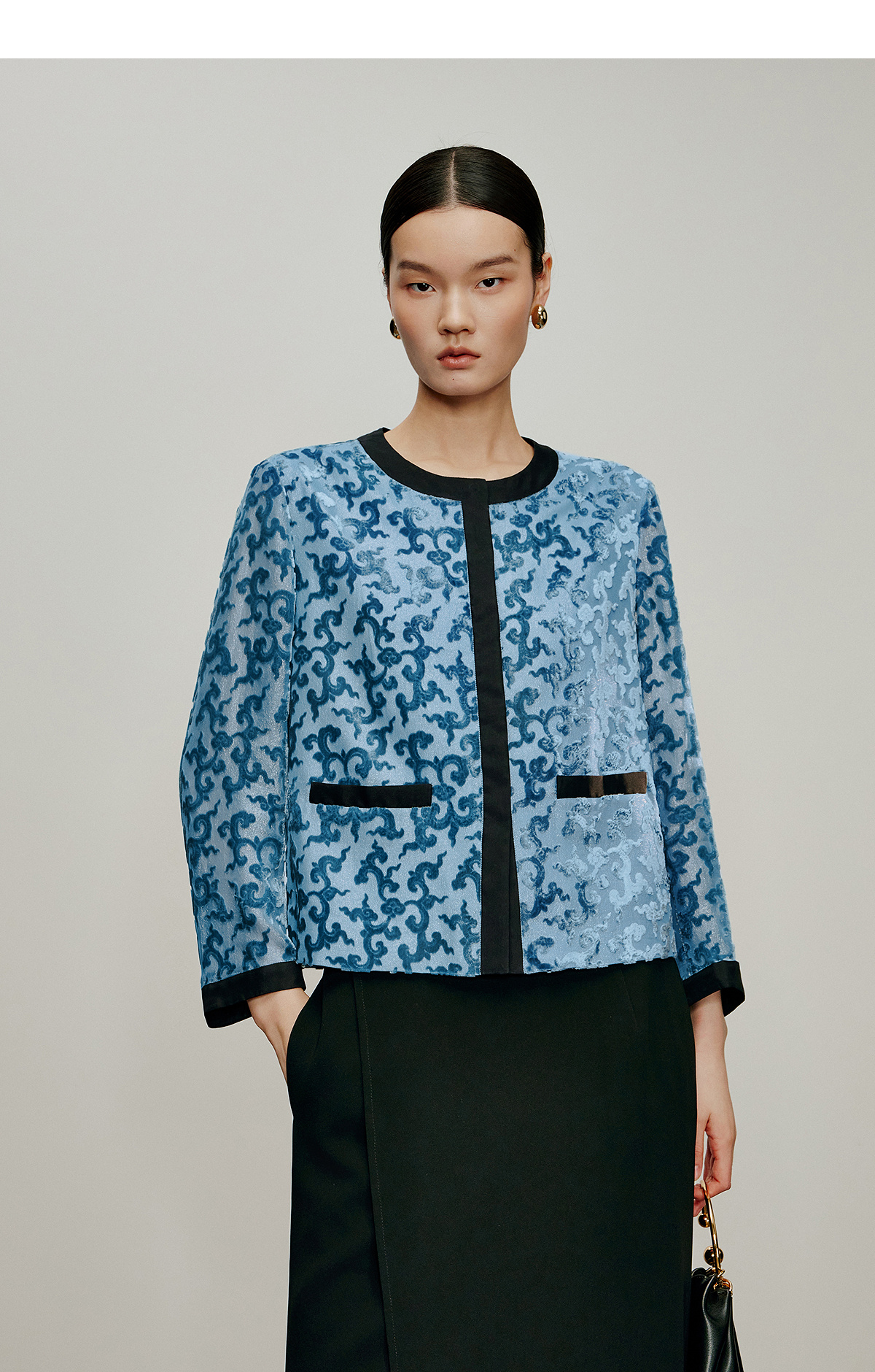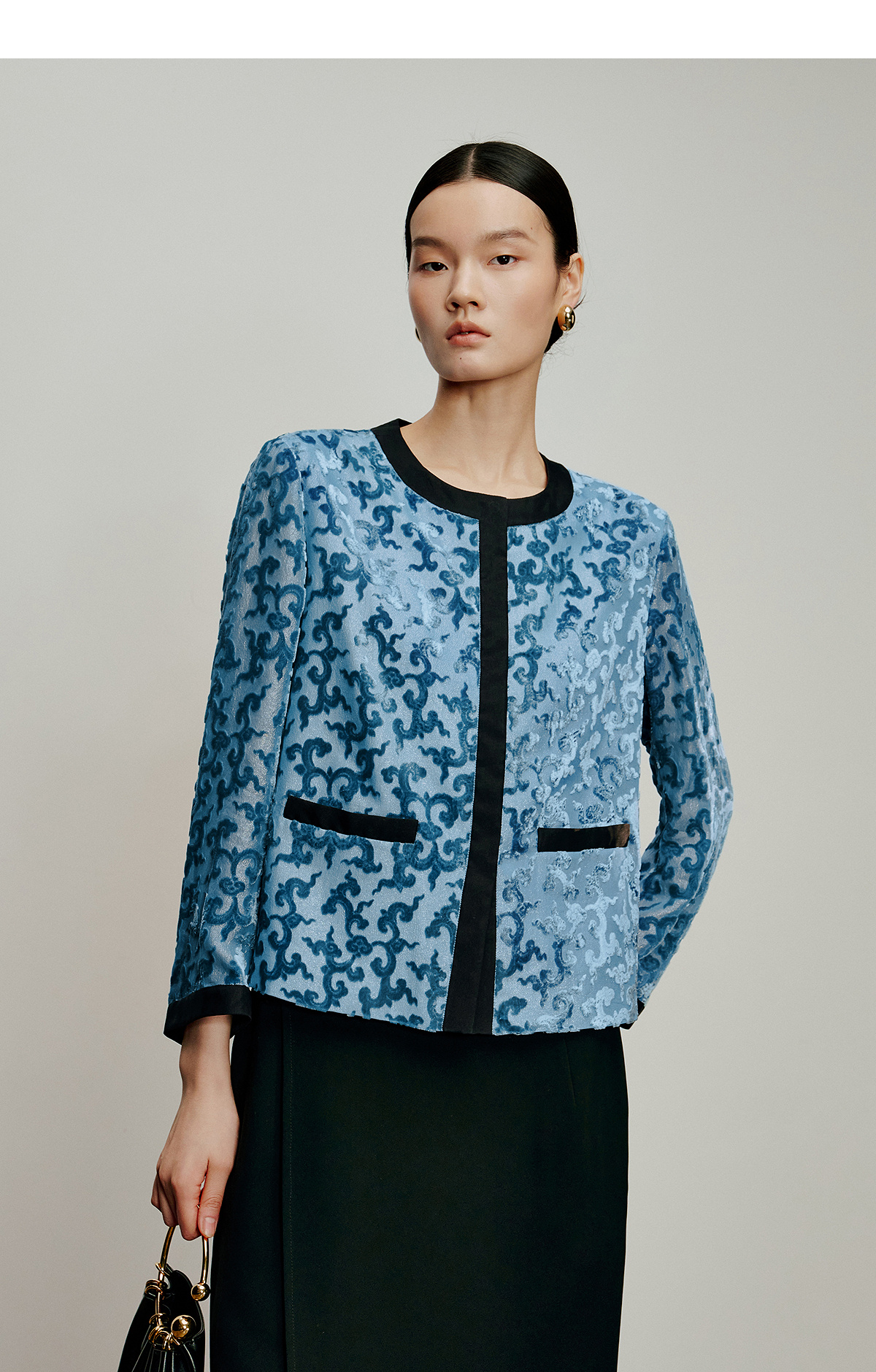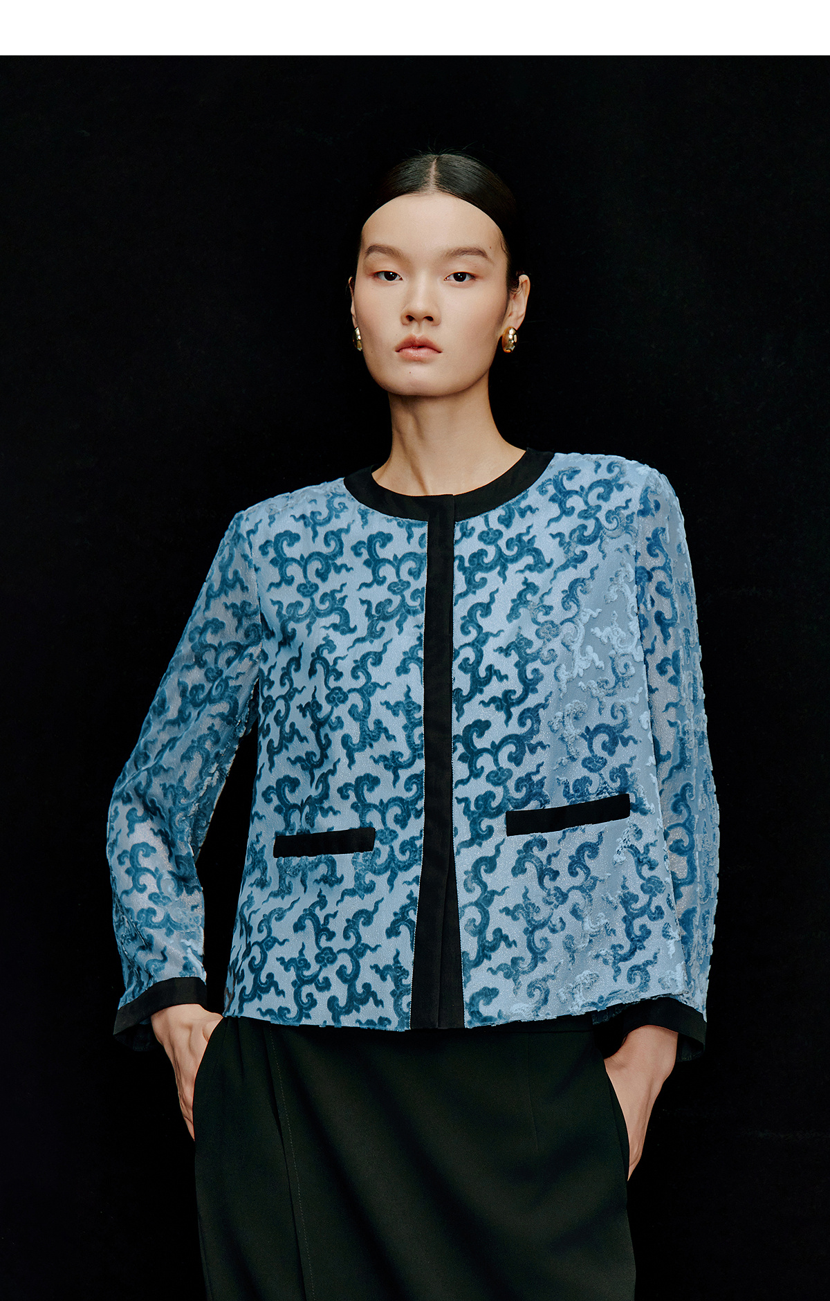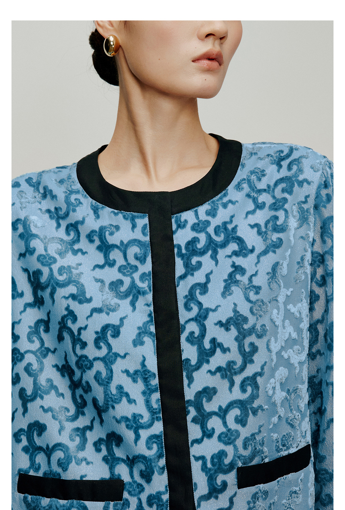 【林栖设计小店】流云漫漫|金丝如意烧花桑蚕丝2026夏新款外套上衣