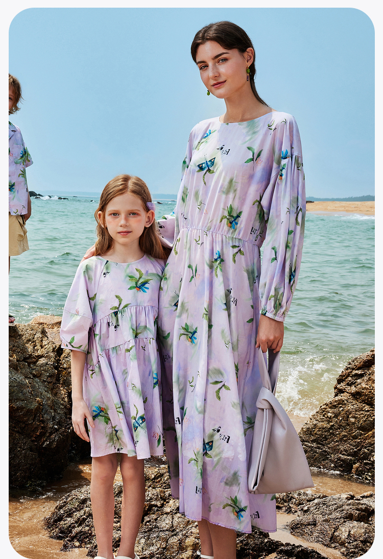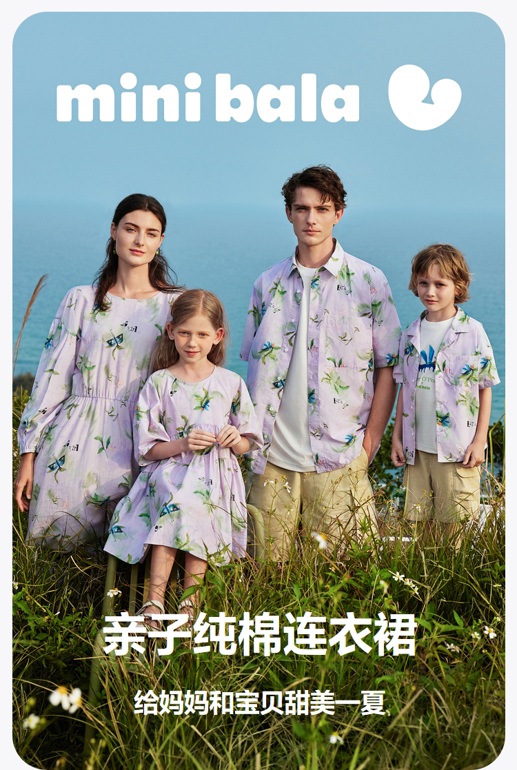【mini亲子 大人款】迷你巴拉插肩袖连衣裙女童纯棉甜美公主风裙子夏