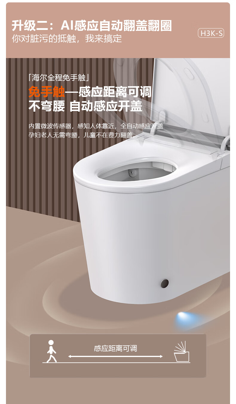 海尔(Haier)母婴级智能马桶 自动翻盖翻圈 泡沫盾杀菌全自动坐便器H3K-U30KS