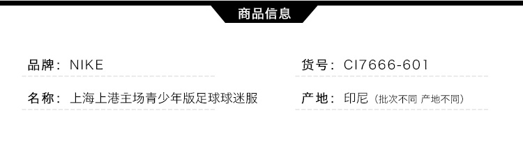小李子:专柜正品NIKE耐克上海上港球迷球衣大童青少年CI7666-601