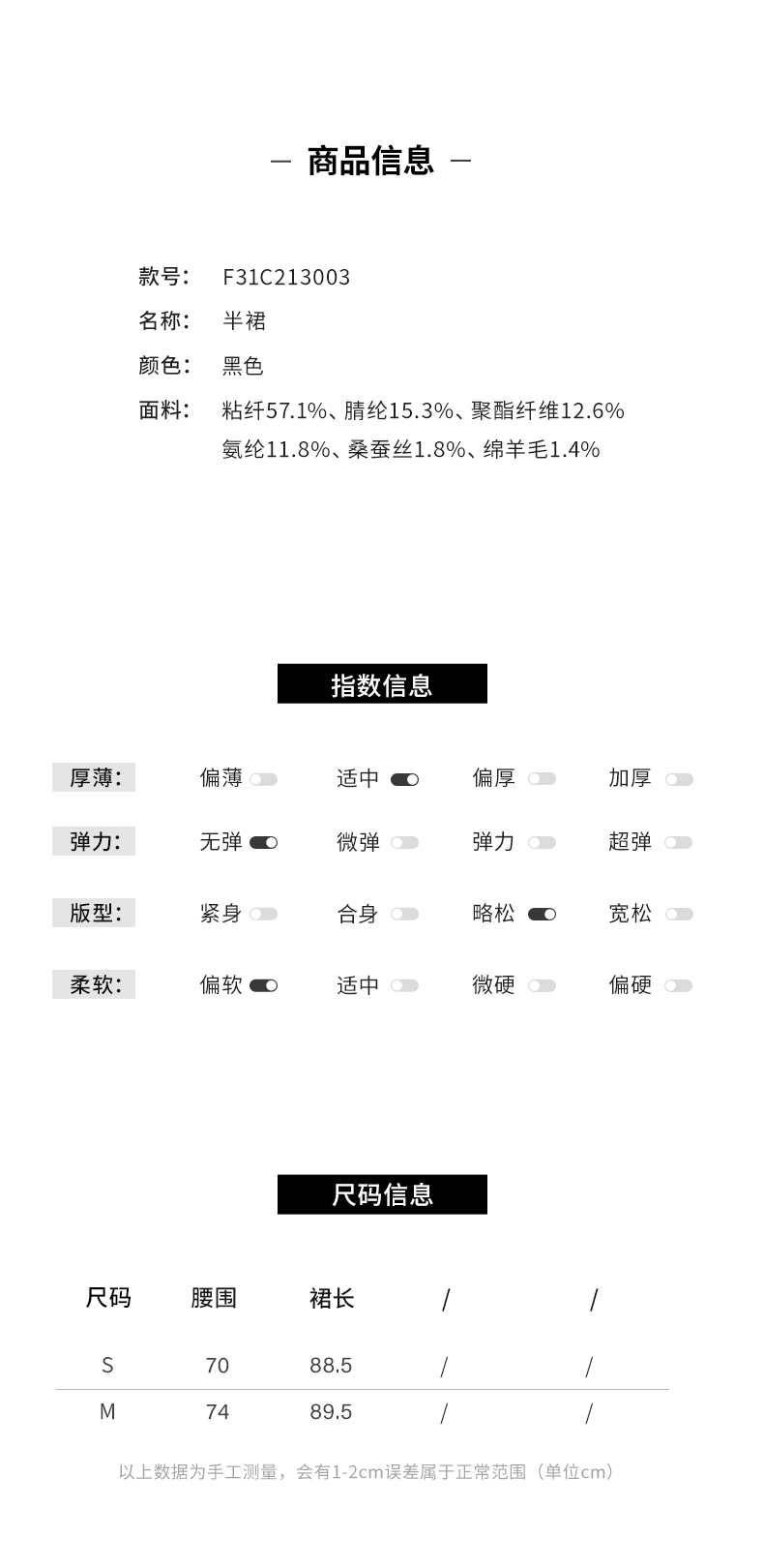 【Lu系高端】阿菁娜春季新款春秋新款Lu系高端面料半身裙桑蚕丝绵羊毛混纺微弹亲肤如第二层肌肤F31C213003