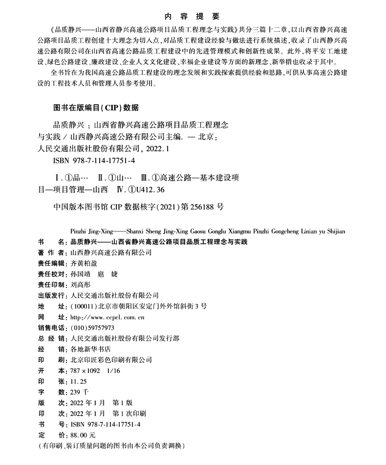 书名:品质静兴——山西省静兴高速公路项目品质工程理念与实践