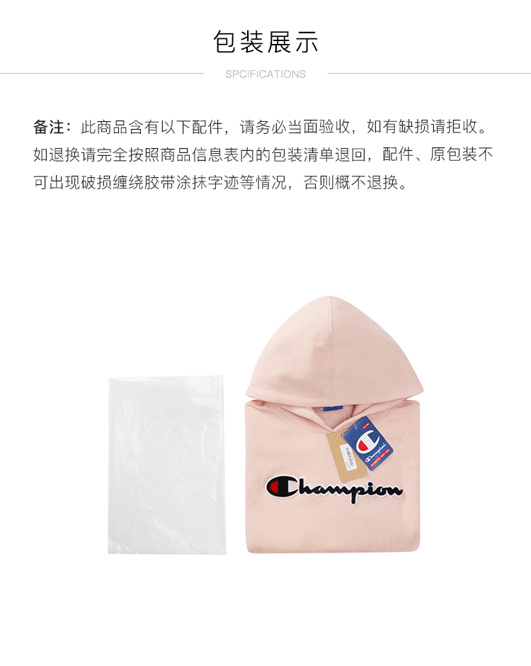 Champion/冠军卫衣男女童 logo棉质运动连帽套头衫现货 403755