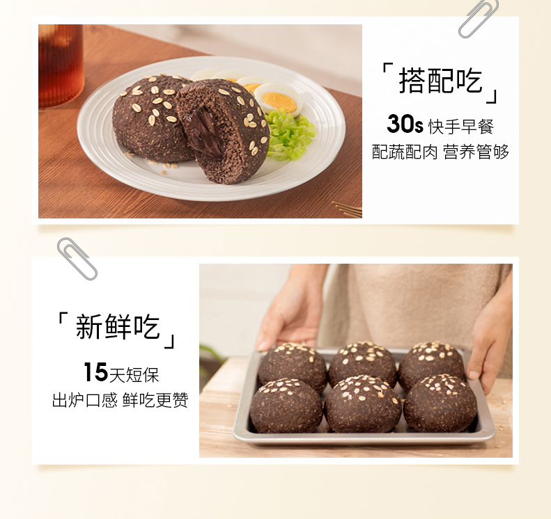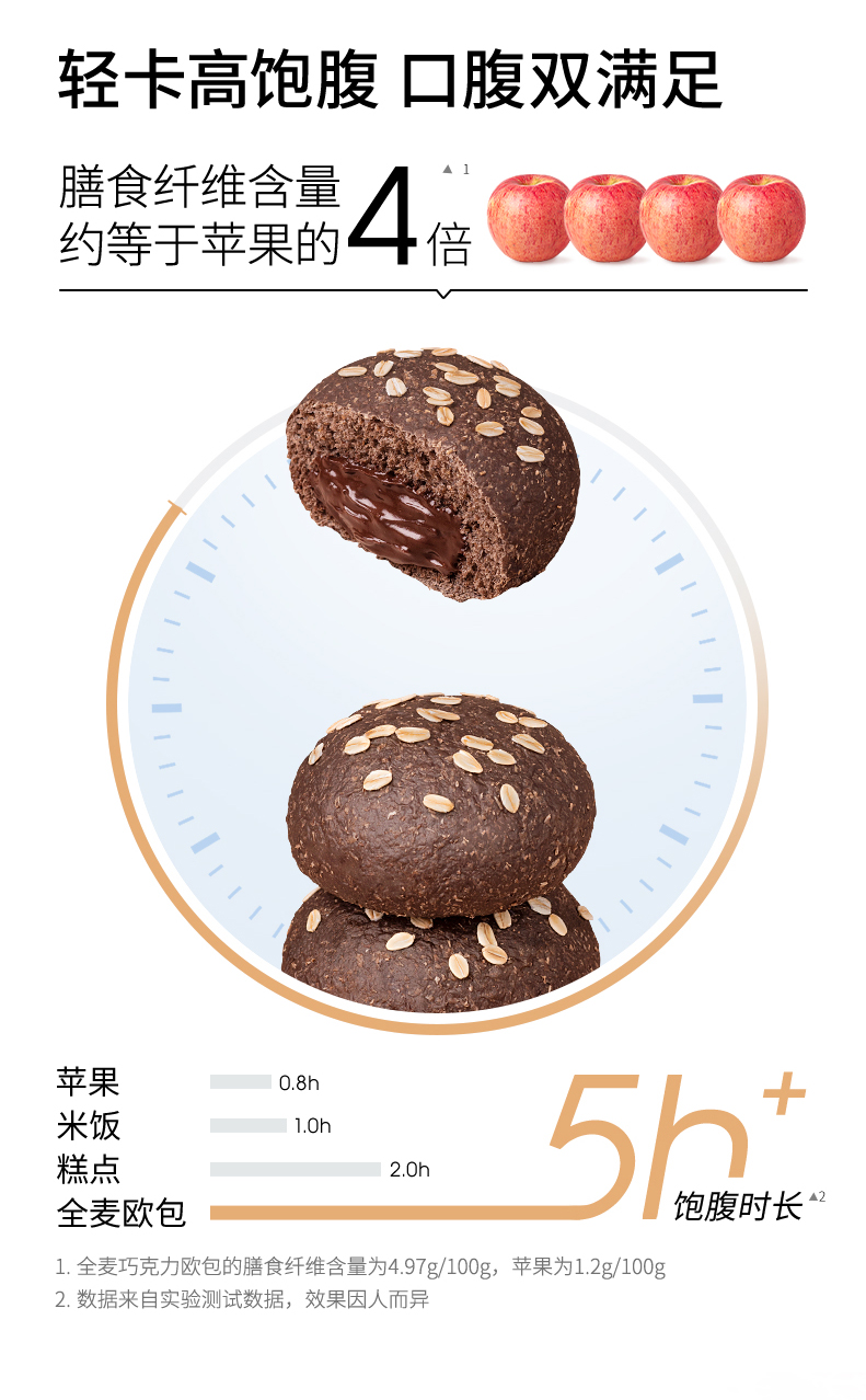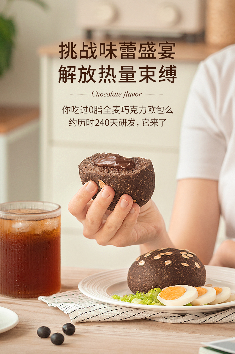 七年五季巧克力全麦面包健康休闲小吃零食0低脂精粗粮早代餐欧包6只装短保产品