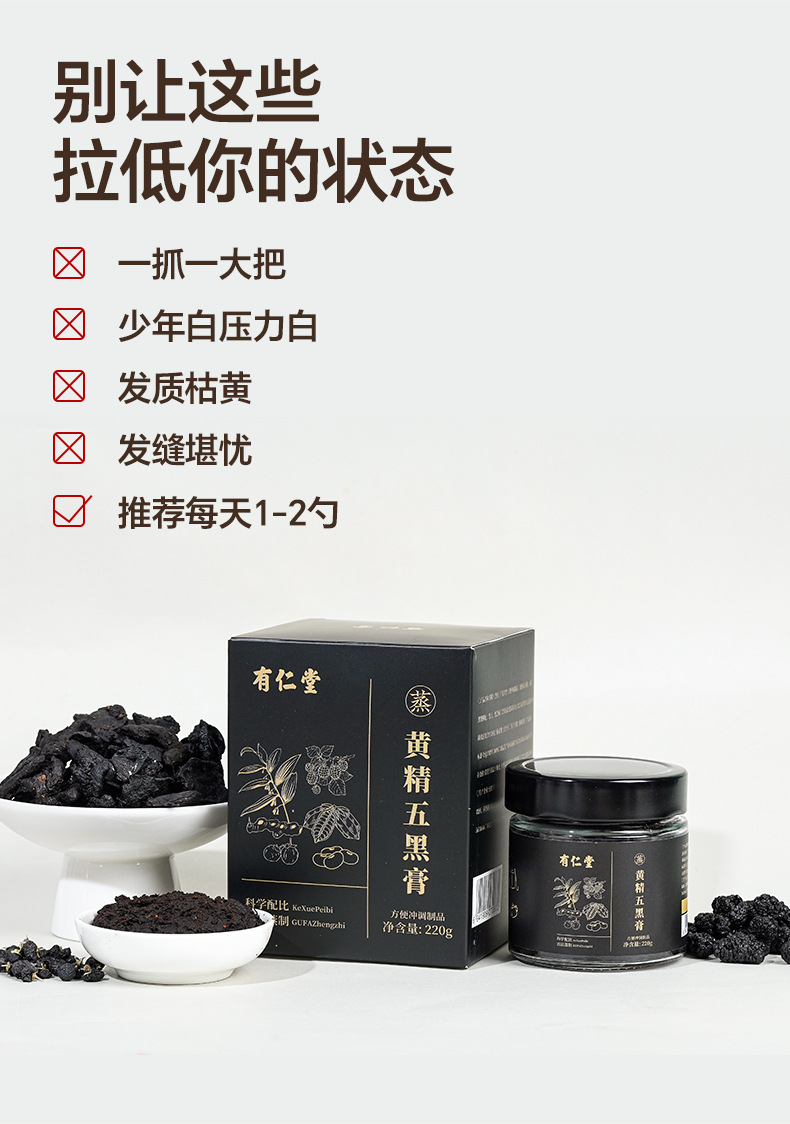 【以黑养黑❗️五黑黄精桑葚膏】甄选品质原料制作,黄精 桑葚 黑果枸杞 黑芝麻 黑豆 不添加一滴水,五黑膏男女蒸膏方乌黑膏L