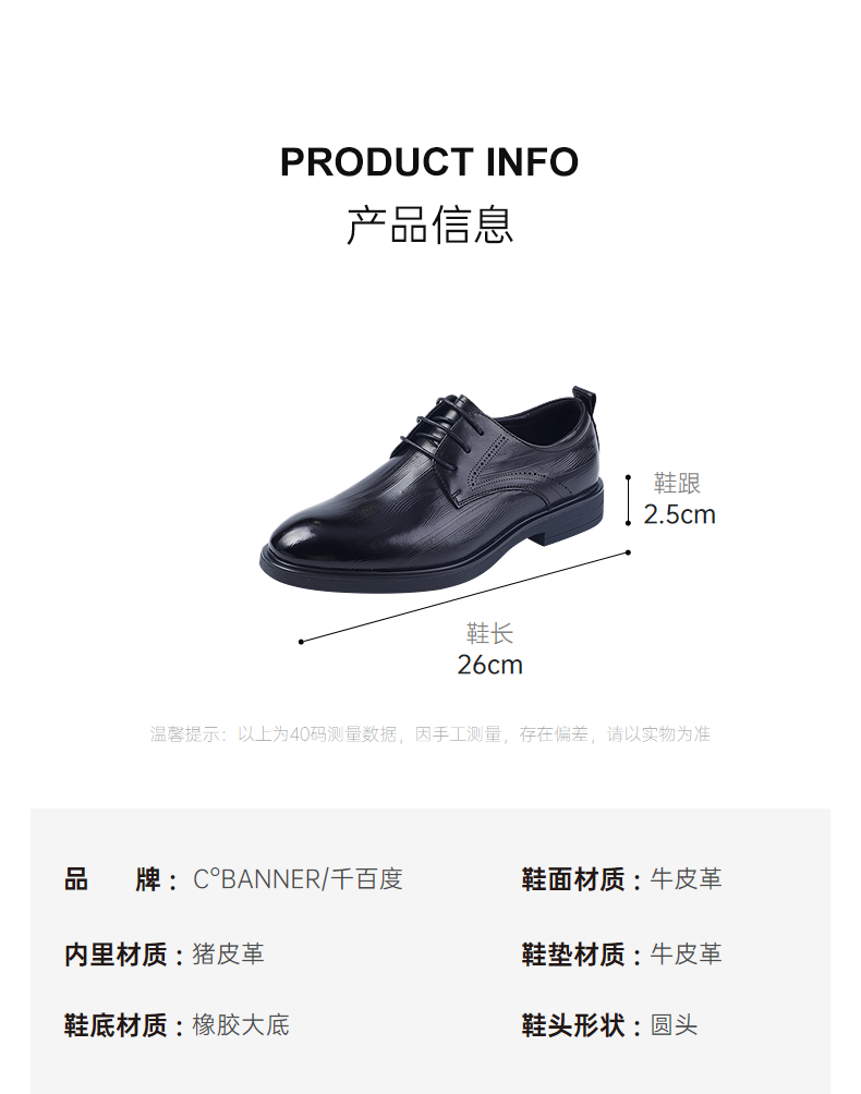 4楼千百度2025秋季男单鞋商务皮鞋透气鞋垫商务正装A25425411