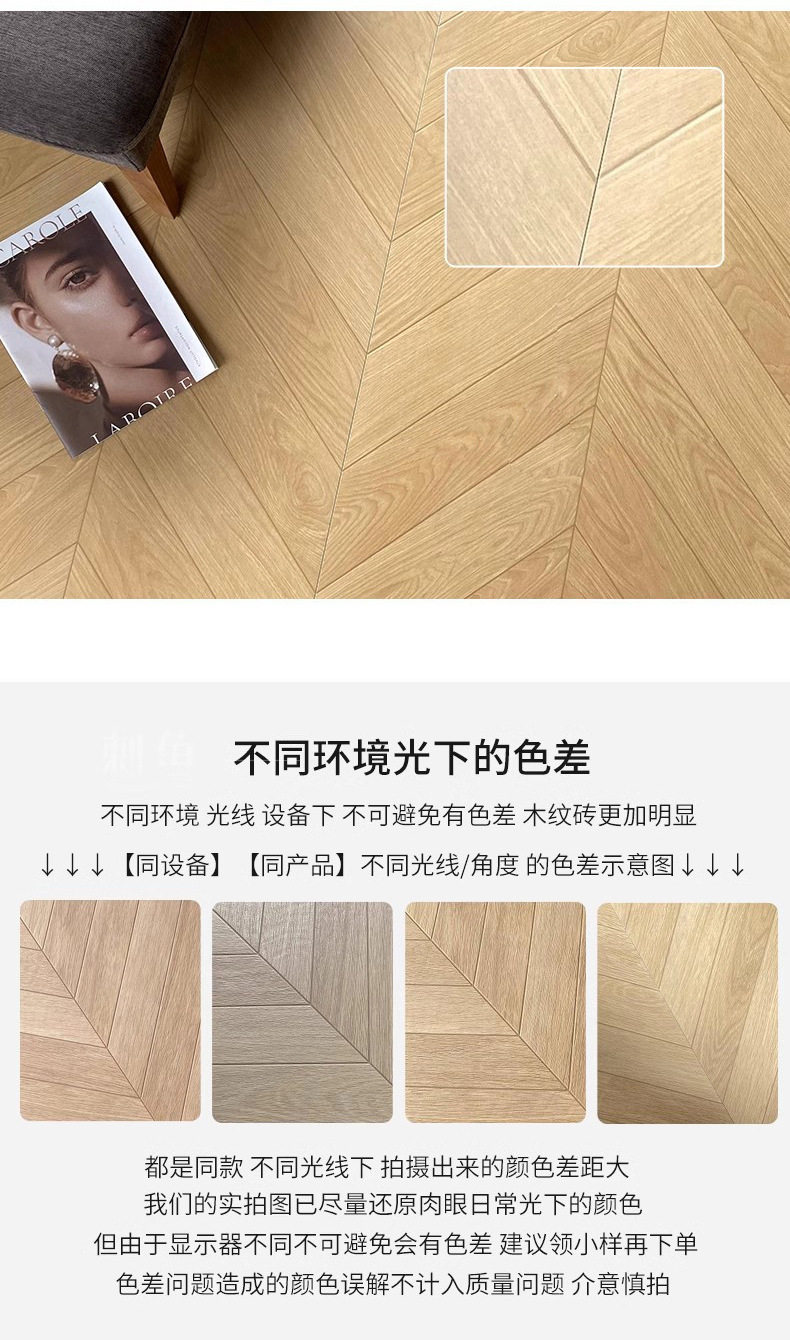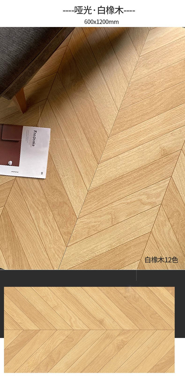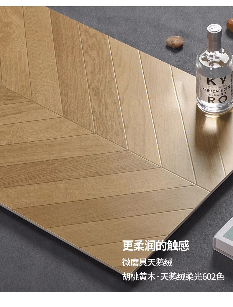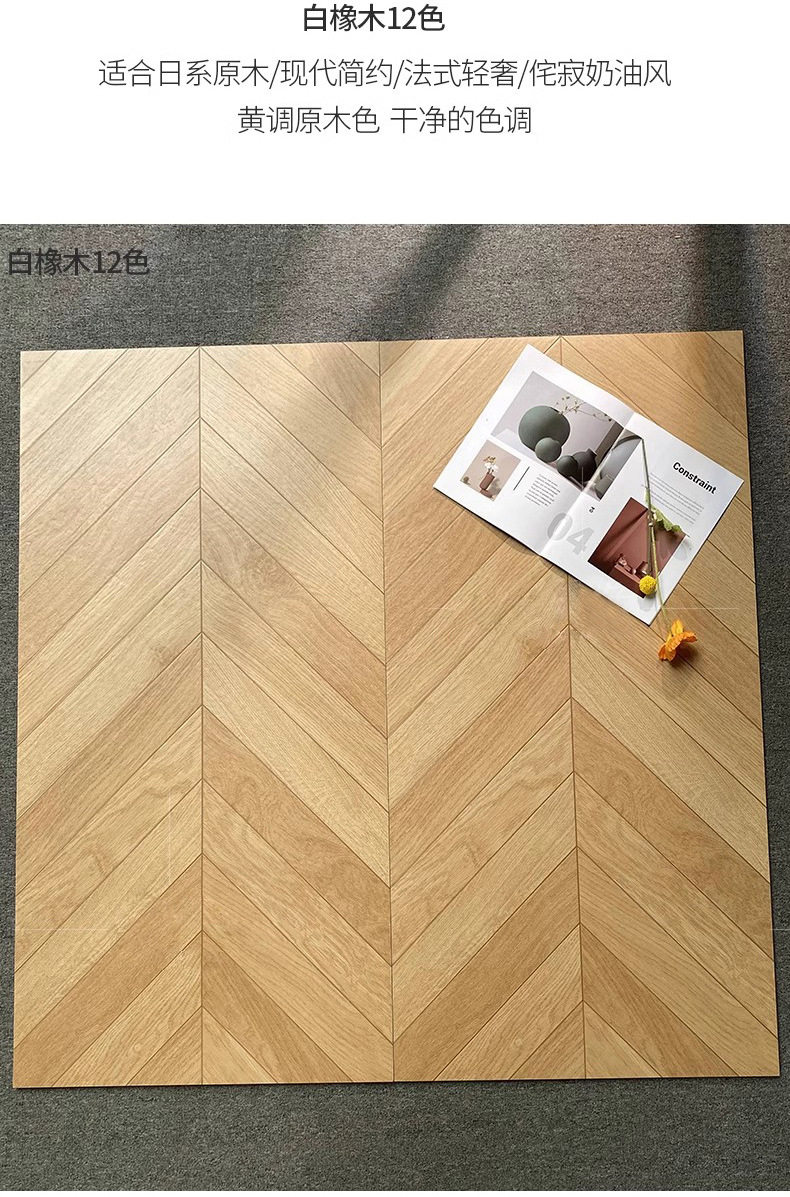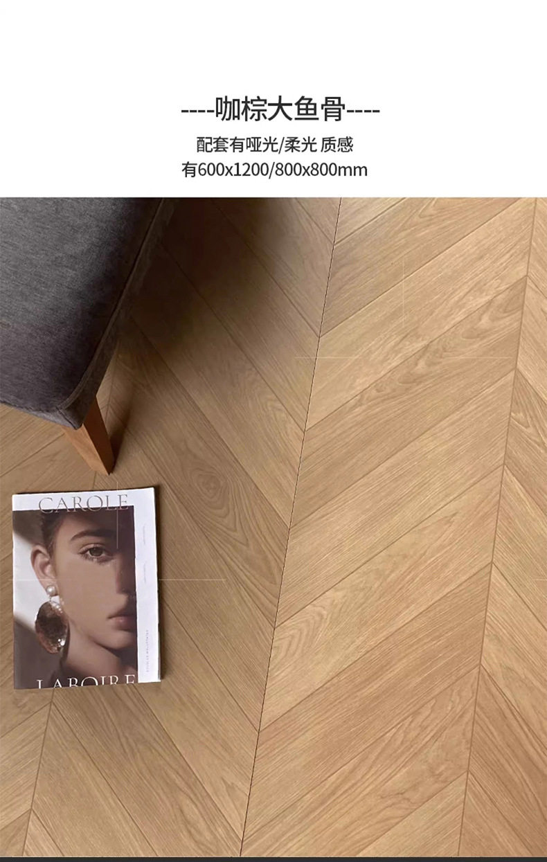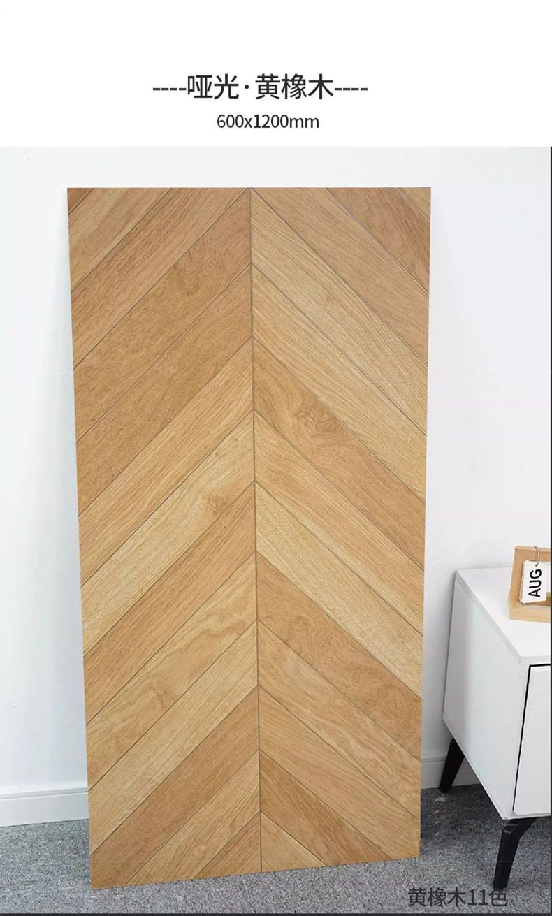 卧室法异600x1200地板砖瓷砖日式砖菱形咖色鱼骨美式木纹原木客厅
