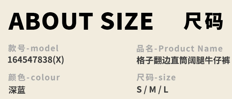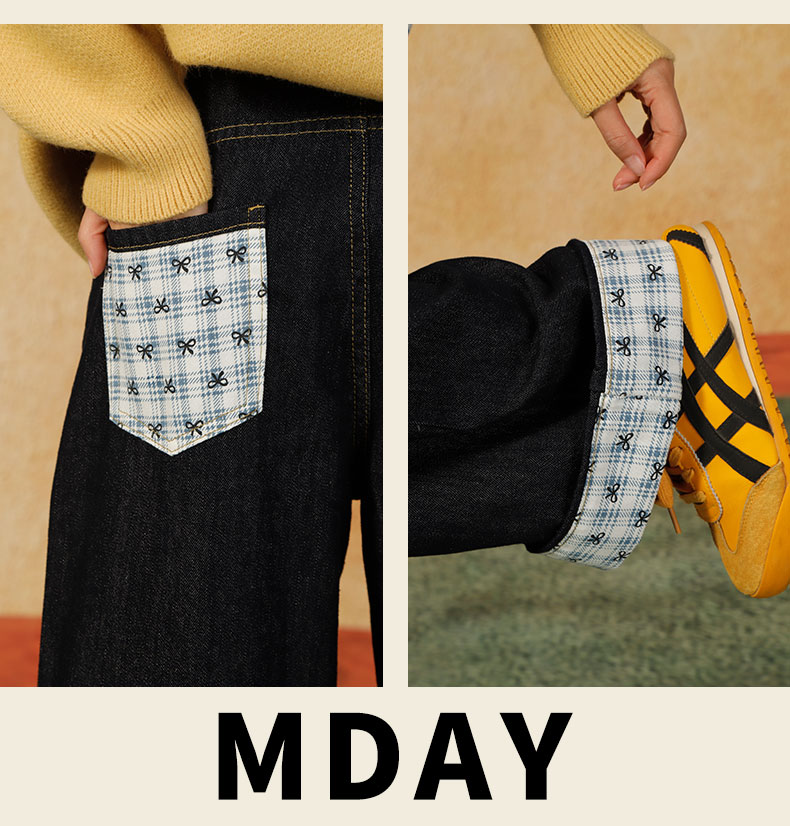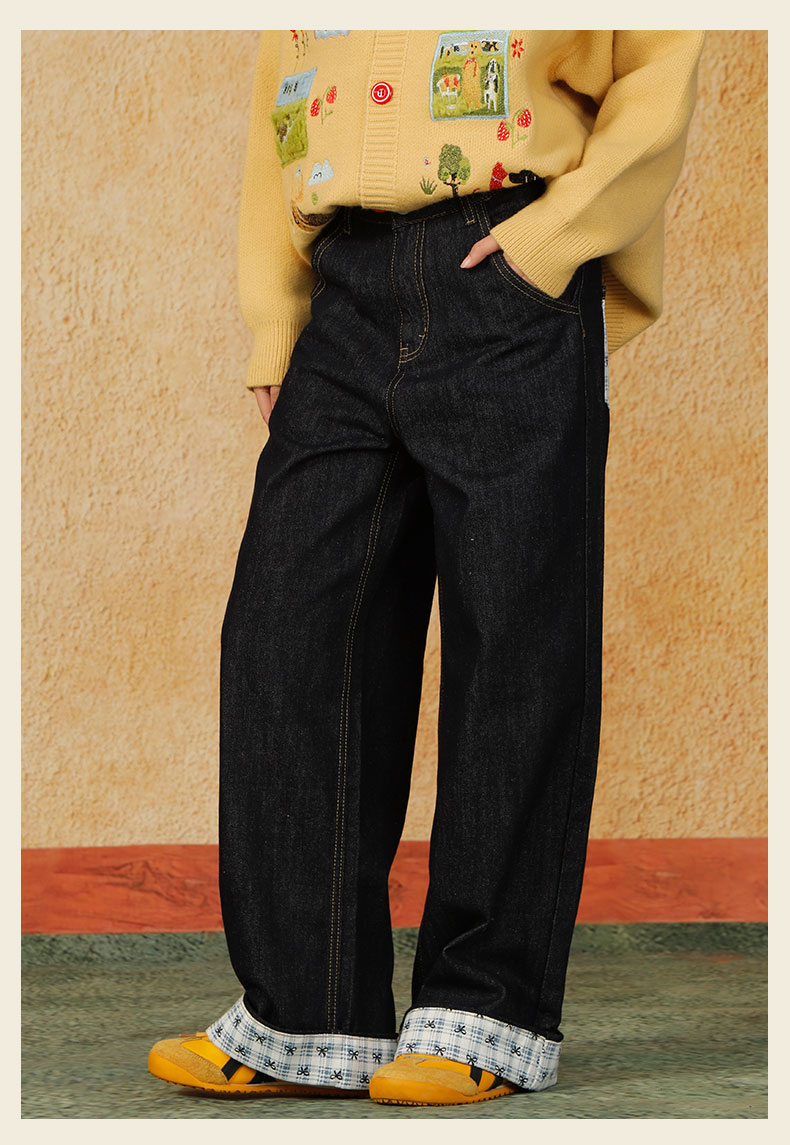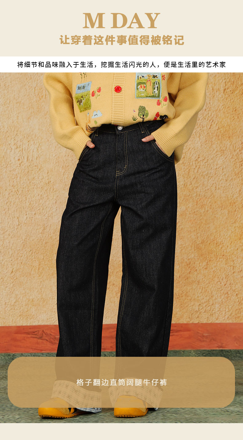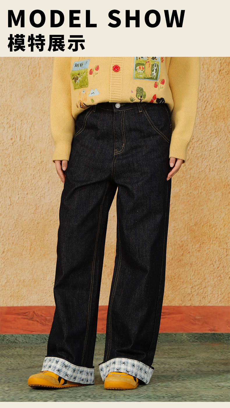 格子翻边直筒阔腿牛仔裤纪念日百货门店同款164547838