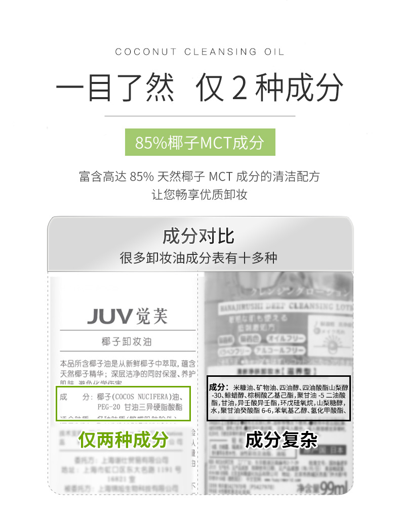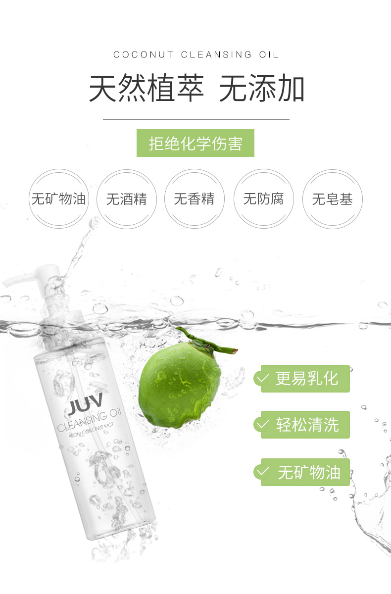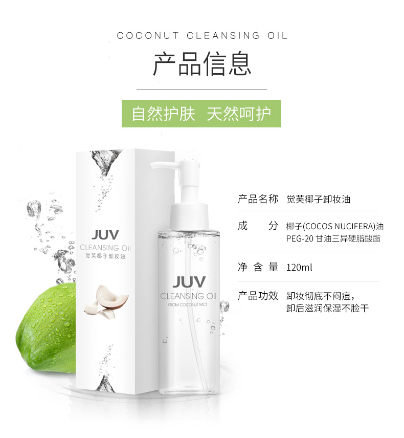 JUV觉芙椰子油卸妆油脸部卸妆水深层清洁卸妆液