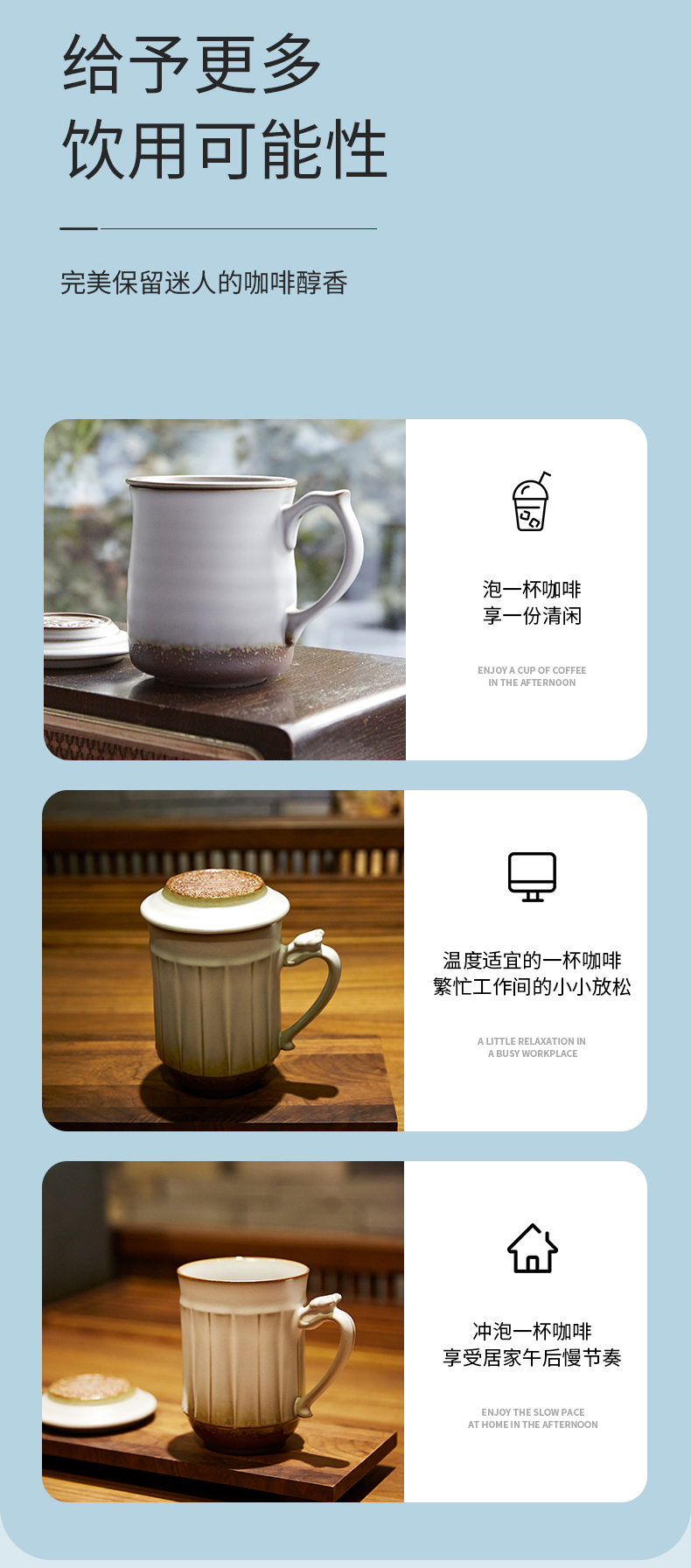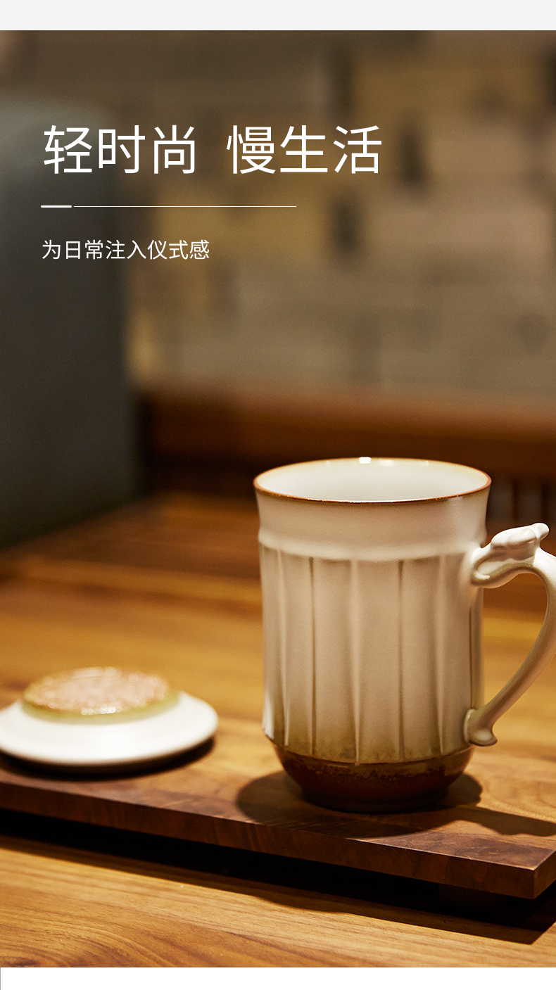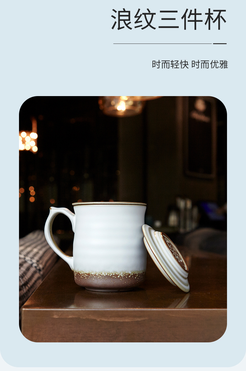 【高杯】活瓷 浪纹三件杯(带茶漏)360ml油脂釉