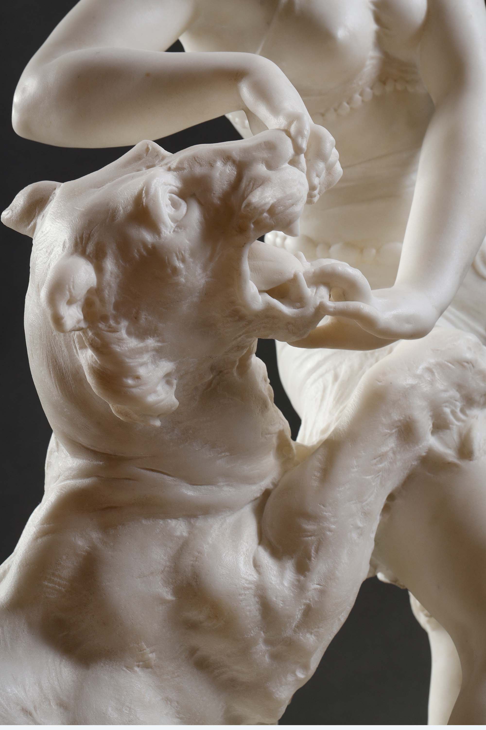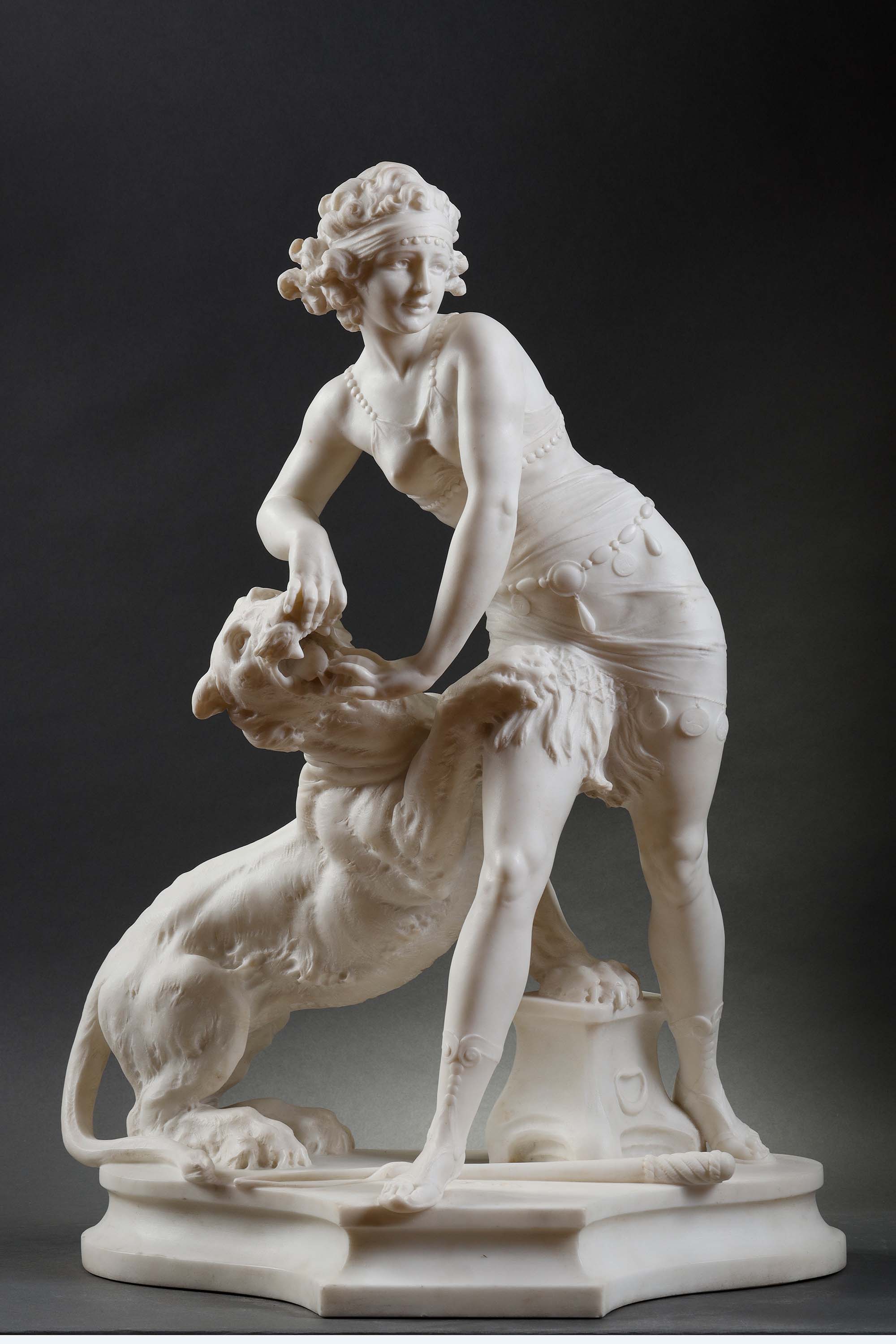 独角鹿西洋古董意大利雕塑家Alfredo Morelli签名创作装饰艺术风格人物主题卡拉拉大理石雕塑作品《驯虎女神》