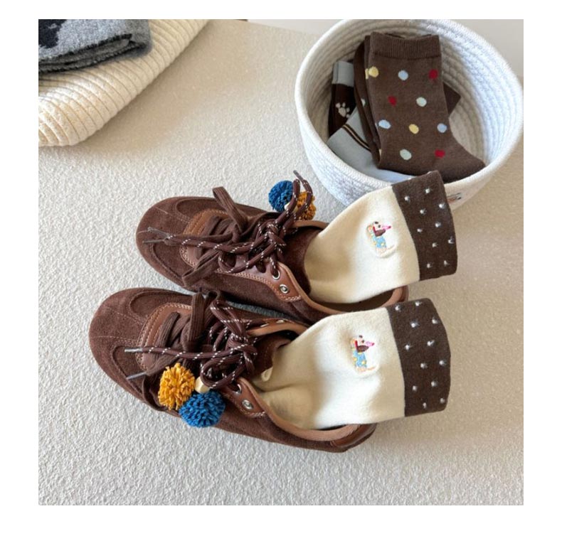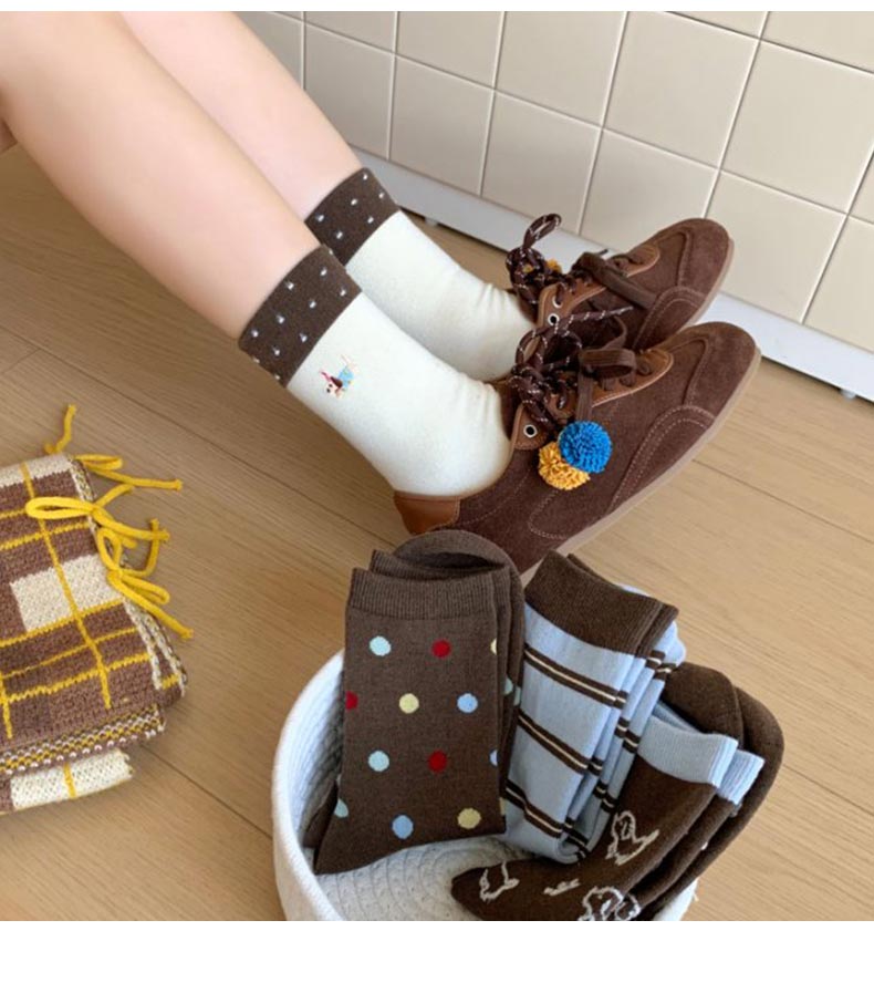 可露丽学院风暖绒中筒条纹波点袜-纪念日百货门店同款167943553