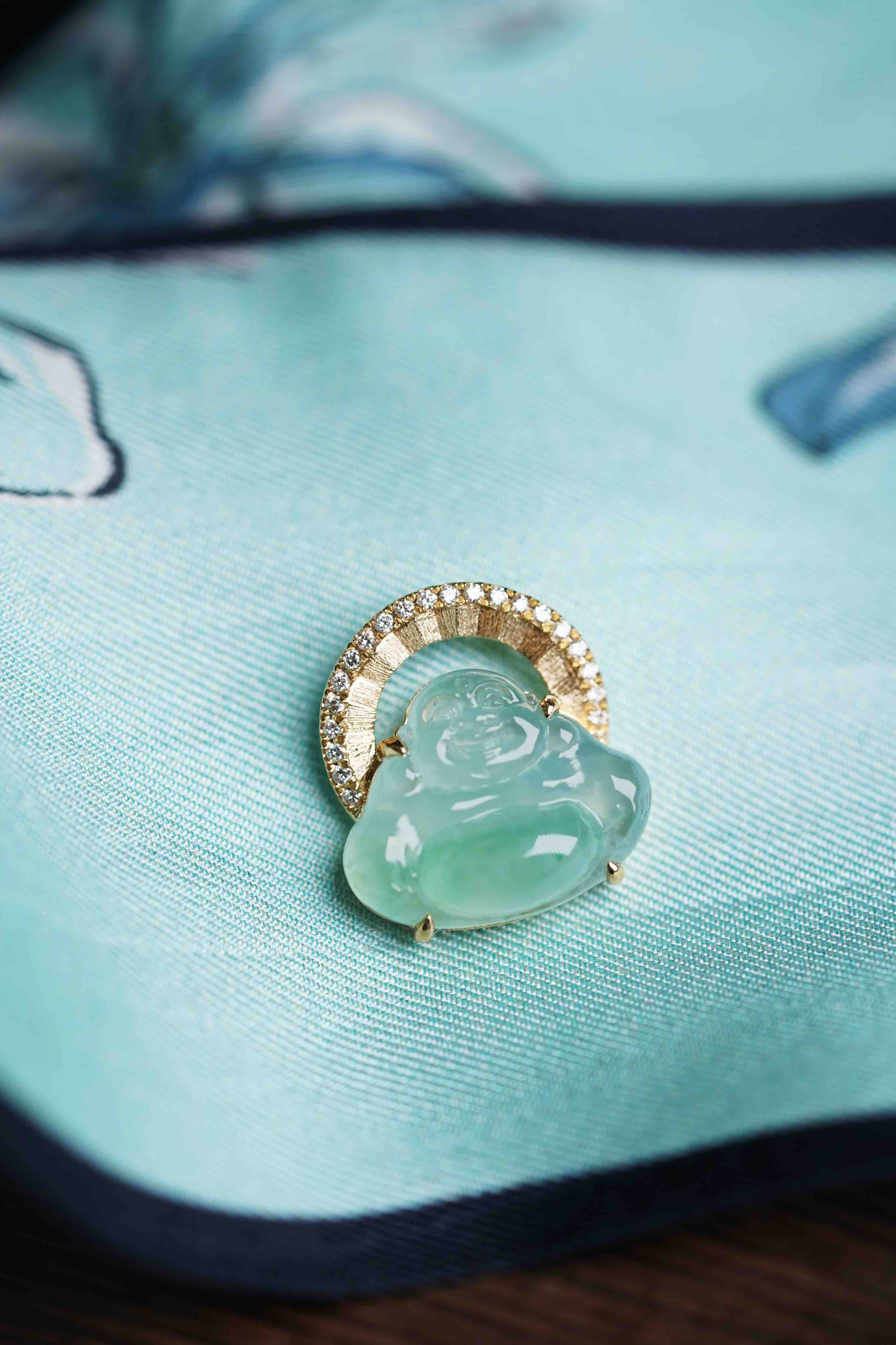 今天有一尊底子很甜的晴水绿佛冰底的料子,属于矿坑很老的