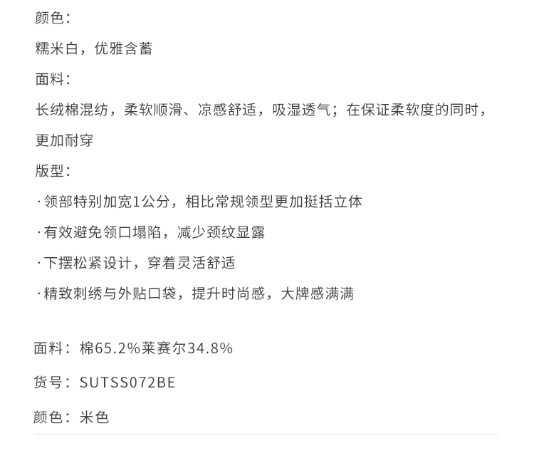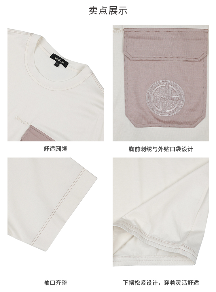 callisto启程系列糯米白长绒棉混纺T恤