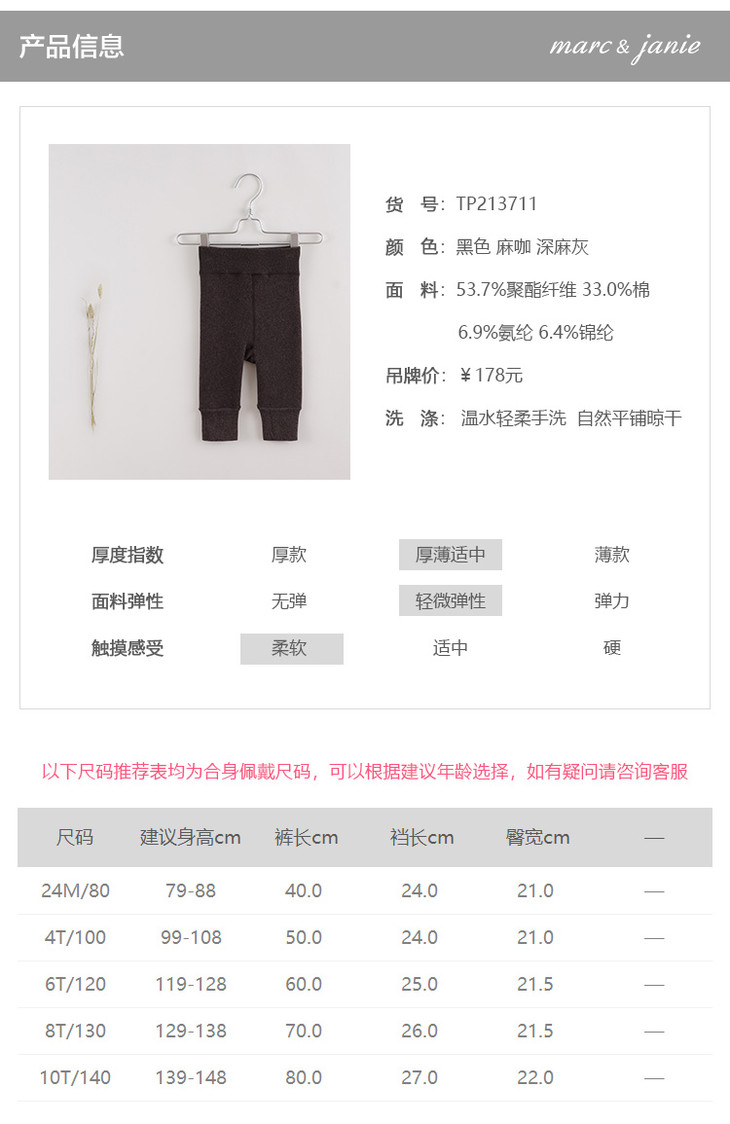 【马克珍妮 法式系列】新款宝宝冬装 女童加厚打底裤213711