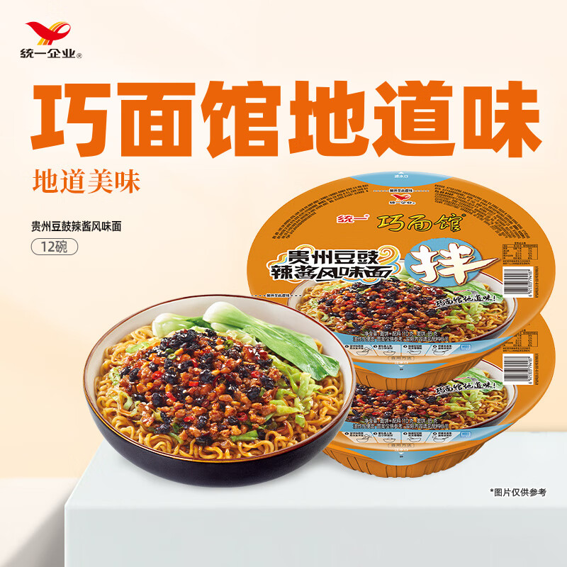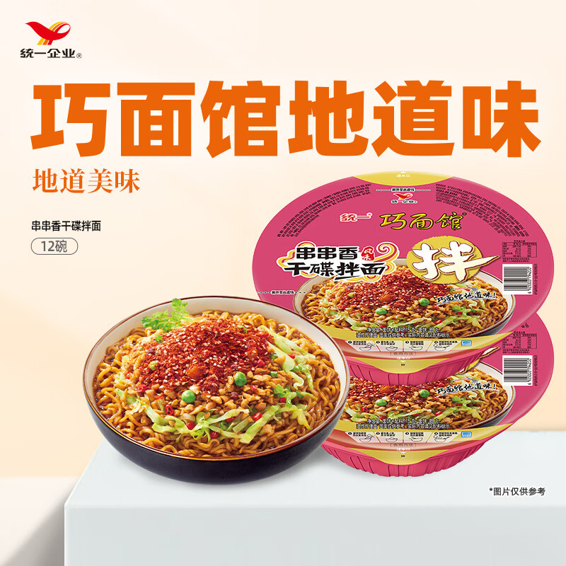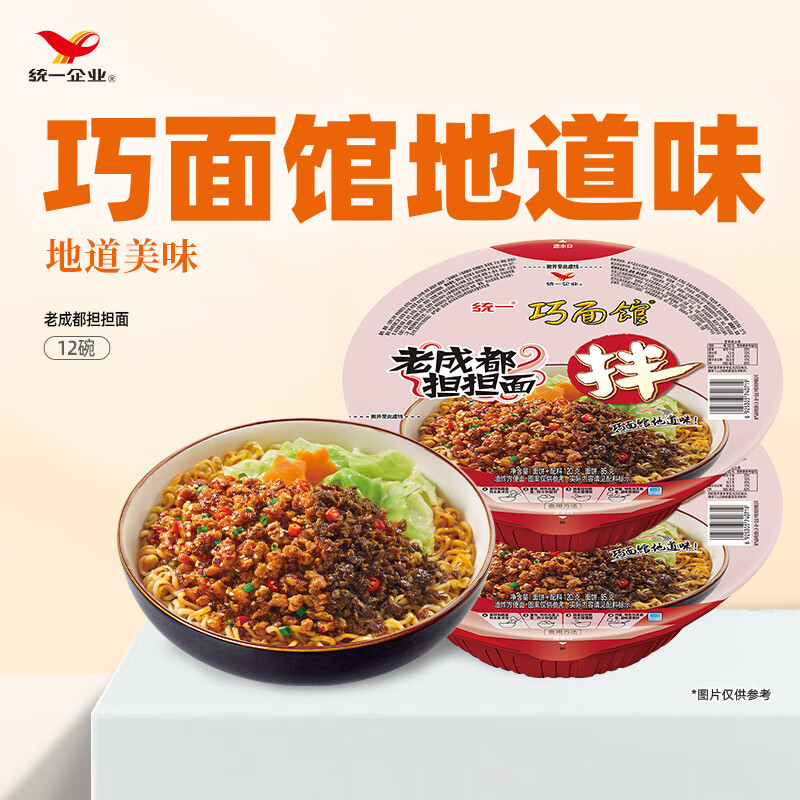 【统一】方便面 碗面 统一巧面馆 (老成都担担面/串串香干碟/豌豆杂酱)12碗/箱 1箱(6个月)